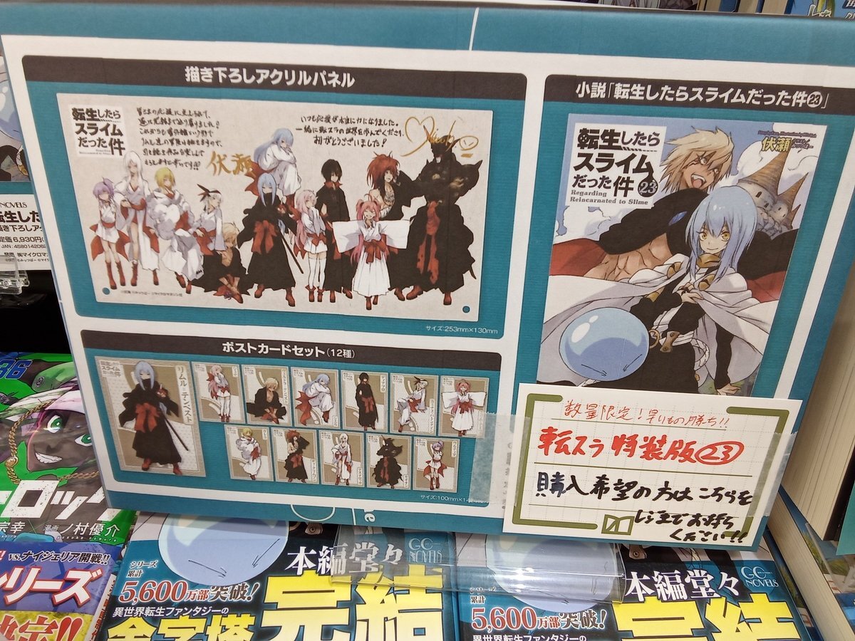 ついに完結! 『 #転生したらスライムだった件 23』 当店にも入荷しております(`・ω・´)ゞ また、数量限定で特装版も入荷! 数に限りがございますので、欲しい方はお早めに! お取り置き『可』です! また本日まで『majicaマネー支払いでポイント20%還元セール!』開催中です! #転スラ完結 #転スラ pic.x.com/CaLVy4Z0kA