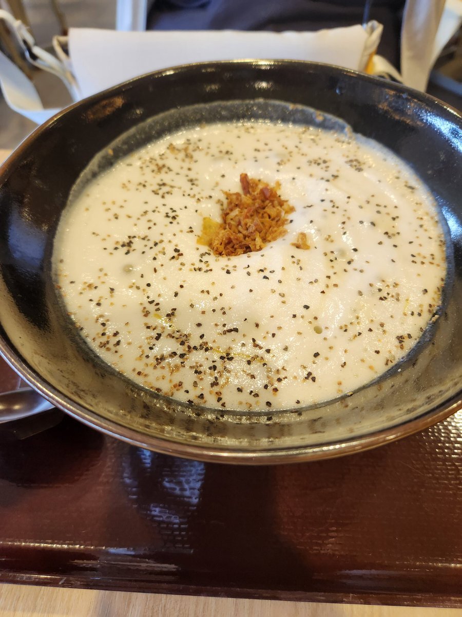 #今日のトホめし #今日のトホ嫁めし ⬅️甘い牛肉と大量のネギ、海苔がのった黒浅間うどん ➡️カレーうどんの上にジャガイモのエスプーマをのせた白浅間うどん #軽井沢旅行 pic.x.com/bbKDHepKvF
