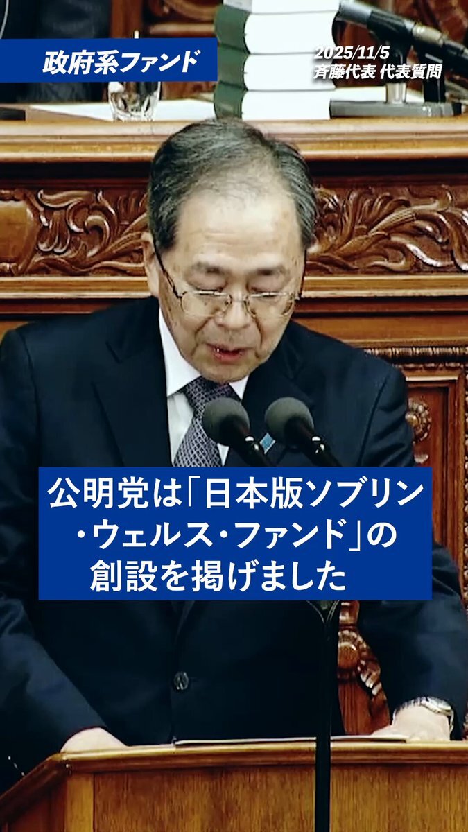 財源は「探す」時代から「創り出す」時代へ。 公明党は、「日本版ソブリン・ウェルス・ファンド」の創設を提案しています。 国の資産500兆円を有効に活用し、 年間5兆円の運用益を暮らしに還元。 食料品の軽減税率ゼロ化、 社会保険料の負担軽減も現実に。 🎥斉藤代表が語る“新しい財源の創り方”