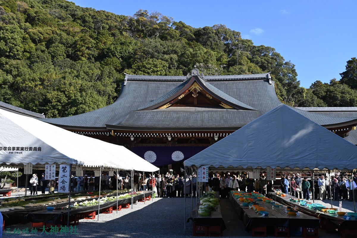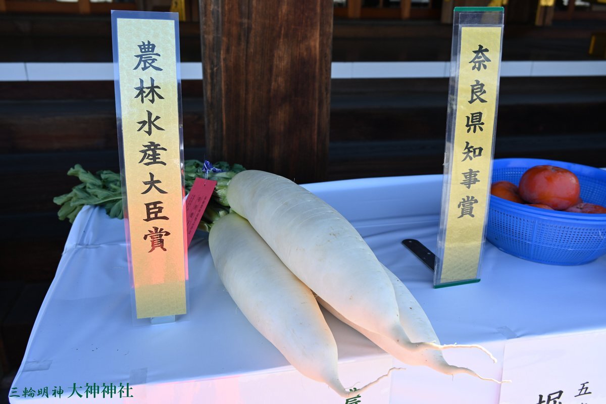 本日、新嘗祭に併せて「#農林産物品評会 並暮らしに生かす手作り品展」が開催されました。毎年多くの出品があり、県下最大規模を誇ります。特に優れた産品には、「#大神神社 宮司豊年講長賞」等の賞が授けられます。午後1時からは、品評会で展示された品々の即売会が開催され多くの方で賑わいました。 pic.x.com/wfGn5OPaog