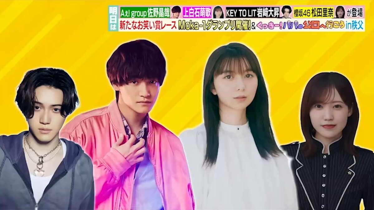 \📢明日のお知らせ🐰/ ⏰朝8時から2時間生放送☀️ 上白石萌歌に刺さるのは誰だ⁉️ Moka-1グランプリ開催🏆 くっきー!パパの 公園へ行こう🌈in秩父 スタジオゲスト🍭 岩﨑大昇(#KEYTOLIT ) 上白石萌歌 佐野晶哉(#Aぇǃgroup ) 松田里奈(#櫻坂46 ) #ラヴィット
