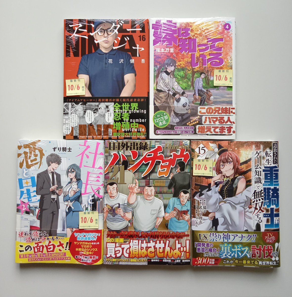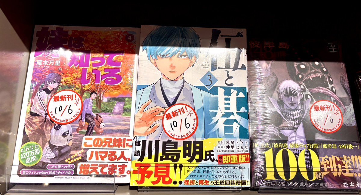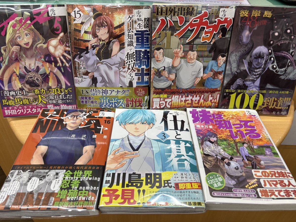 #講談社 青年向け新刊コミックス入荷‼️/ 本日10/6発売⭐️その①( ˙꒳​˙ )b 📺TVアニメ制作中‼️ #Sランクパーティから解雇された【呪具師】 #追放された転生重騎士はゲーム知識で無双する #1日外出録ハンチョウ #アンダーニンジャ🥷 なんか目が離せない兄妹コメディ #妹は知っている #伍と碁 etc‼️ pic.x.com/S1IiuFLgeB