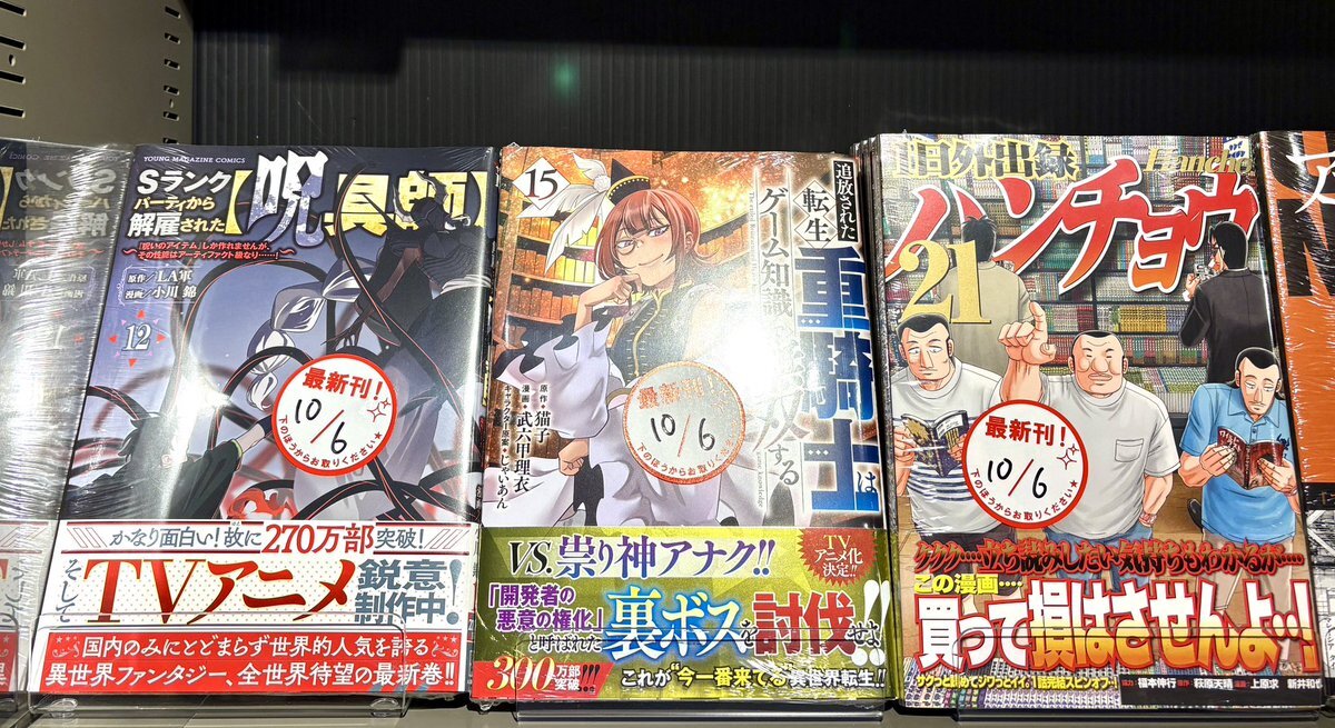 【本日発売】 #追放された転生重騎士はゲーム知識で無双する 15巻 #Sランクパーティから解雇された【呪具師】12巻 #アンダーニンジャ 16巻 入荷してます💁‍♀️ 本日新刊多数入荷!! 23時まで営業中 #弁天町 #ブックスB pic.x.com/ANVotEobpT
