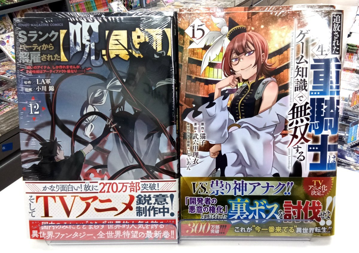 【10/8 コミック新刊のご案内】 #Sランクパーティから解雇された呪具師#追放された転生重騎士はゲーム知識で無双する⑮ 他多数入荷しました! #講談社 #小川錦 先生 LA軍先生 #武六甲理衣 先生 猫子先生 pic.x.com/GsajJ53Zbn