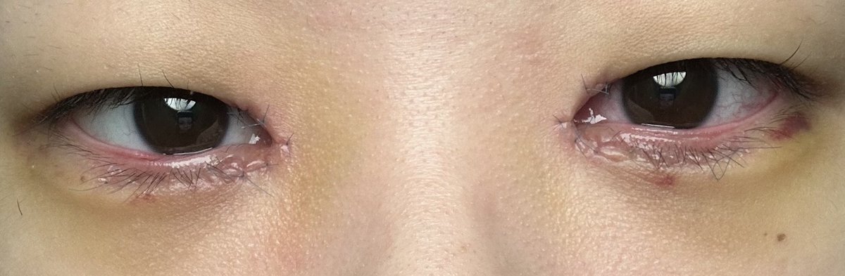 内眥形成術(逆さまつげ、目頭切開(スキンリドレーピング法))保険適用 8日目朝 ちょっとだけ残ってるー 今日は抜糸と二重切開です!! #眼瞼下垂 #逆さまつげ #整形レポ #整形垢さんと繋がりたい #保険適用 #目頭切開 pic.x.com/Cb7MJ7wVXF
