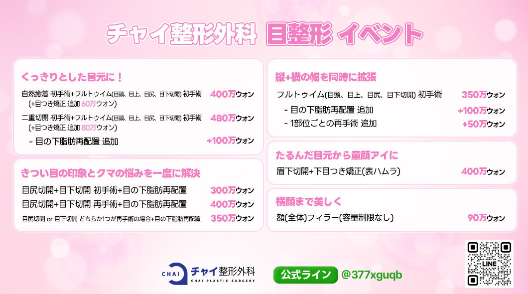 🩷韓国チャイ整形外科 目整形 イベント開催中🩷 二重整形 目尻切開などお得に受けられるチャンス🎁 目専門チェ院長の 1人体制で工場型の心配なし! 長年のノウハウと技術でなりたい目元を叶えます✨ 公式LINEよりお友達追加📩 line.me/R/ti/p/@377xgu… #韓国整形 #目頭切開 #目フル #自然癒着 x.com/chai_psjp/stat…