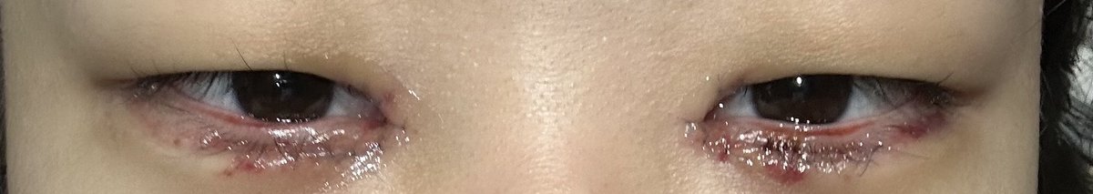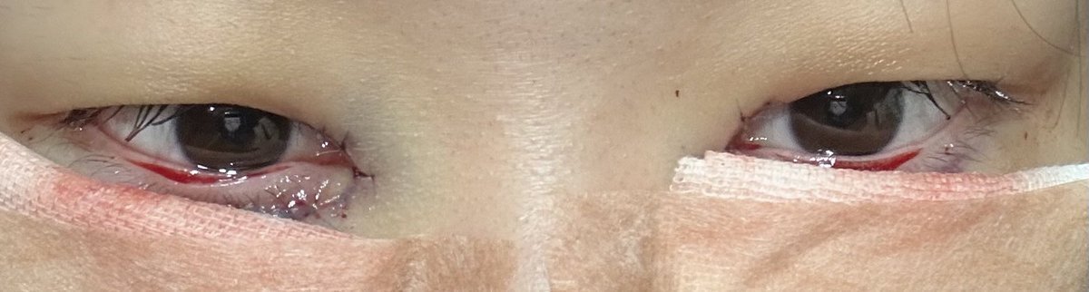 内眥形成術(逆さまつげ、目頭切開(スキンリドレーピング法)) 保険適用 手術直後と1時間半後 麻酔が切れたあとは皮膚が引っ張られるようなズキズキするような感覚だった。 薬を飲んだらそこまで気にならなかった。 #眼瞼下垂 #逆さまつげ #整形レポ #整形垢さんと繋がりたい #保険適用 pic.x.com/5icIrpdr0W