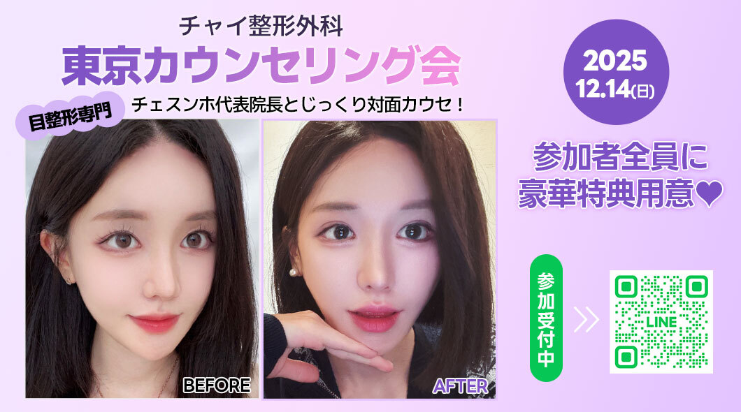 冬のボーナスでこっそりイメチェン💡 ナチュラルな仕上がりに満足の声続々...! 🌷チャイ整形外科 東京相談会🌷 12/14(日) は経験豊富なドクターに 日本でカウセができるチャンス💨 ✅手術費用特別割引 ✅手術予約者へ施術サービス ✅豪華プレゼントご用意 申込💌line.me/R/ti/p/@377xgu… #目フル x.com/chai_psjp/stat…