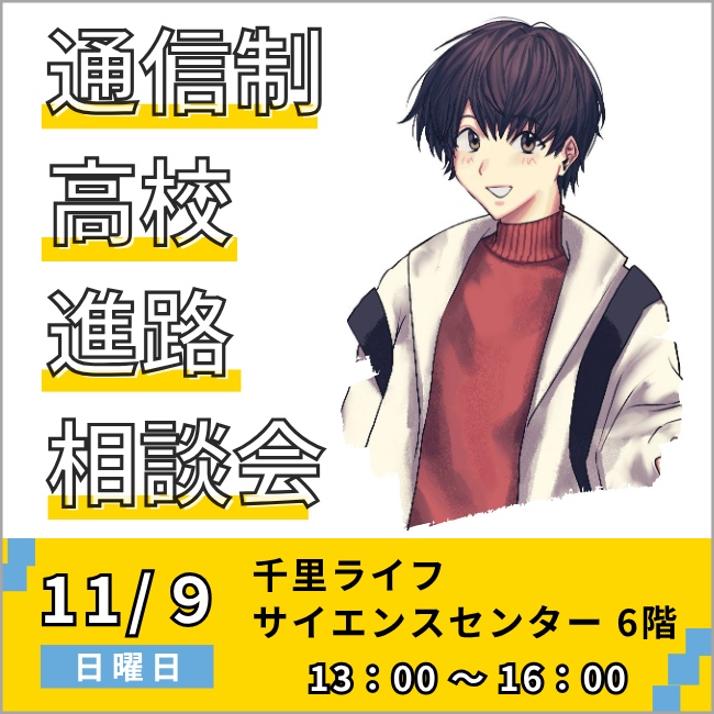 11/9(日)千里中央で合同相談会参加します! 中学生高校生ともぜひお越しください。chsevent.com/event/senri/ #通信制 #学校選び #通信制サポート校 #千里中央 #ベネッセ高等学院 pic.x.com/lgsE5xX514