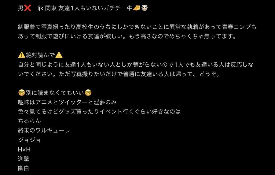 06┊︎通信 ┊︎🚹┊︎ゲーム┊︎呼びタメ大歓迎 暇人ぼっちに仲良い人ください!! いいねでdm凸します! #通信制高校生と繋がりたい #友達募集 #友達募集中中部 #お友達募集中 #ネッ友募集 #高校生とつながりたい #フッ軽 #中高生と繋がりたい #暇人 #高校生と繋がりたい
