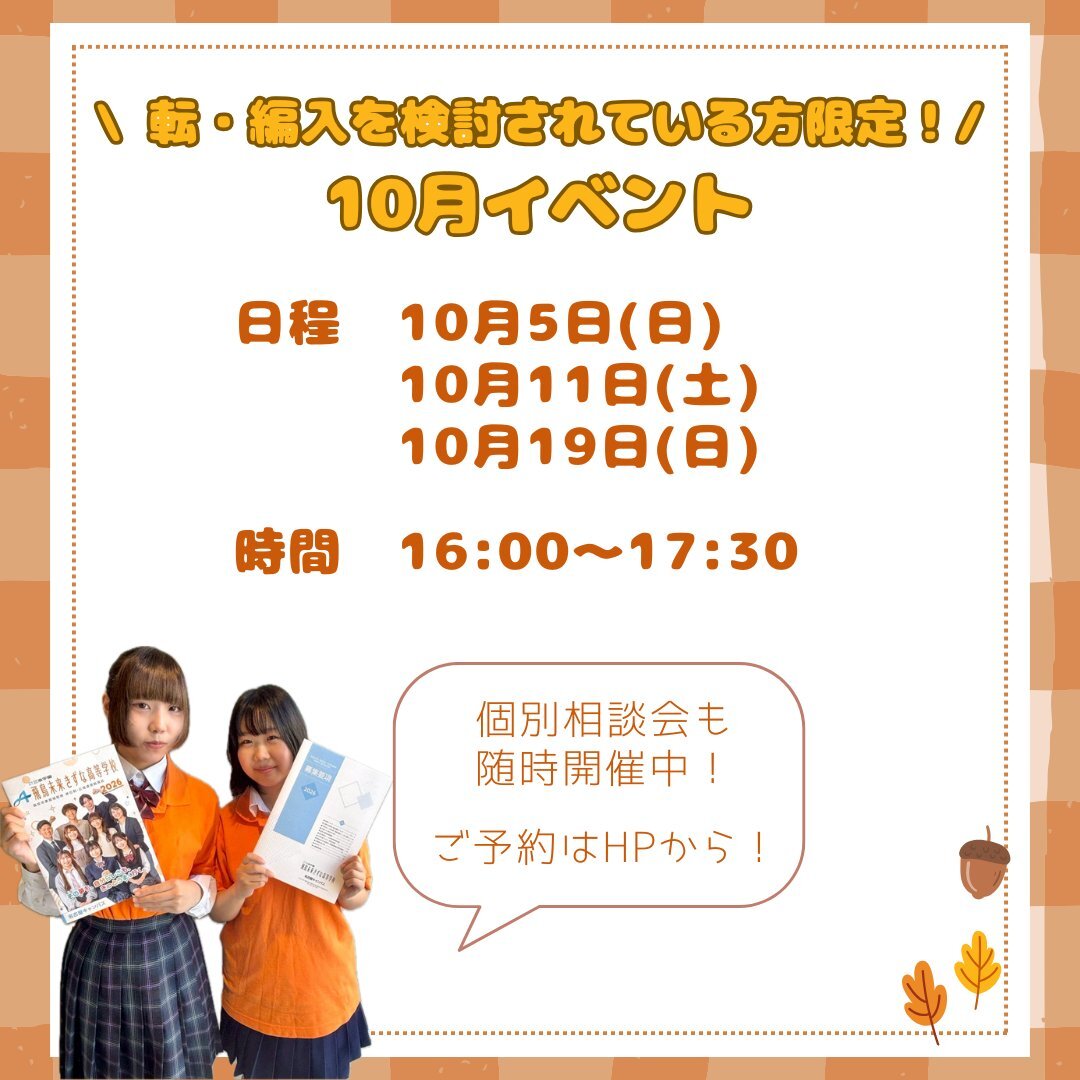 飛鳥未来きずな高等学校名古屋キャンパス~ 中3生イベントのご案内です✨ 在校生や先生と交流ができます! ぜひ来てね♪ x.gd/PEjSo #通信制 #通信制高校生と繋がりたい #オープンキャンパス #高校受験 #不登校 #不登校は不幸じゃない #起立性調節障害 pic.x.com/GUBLDE8nyo