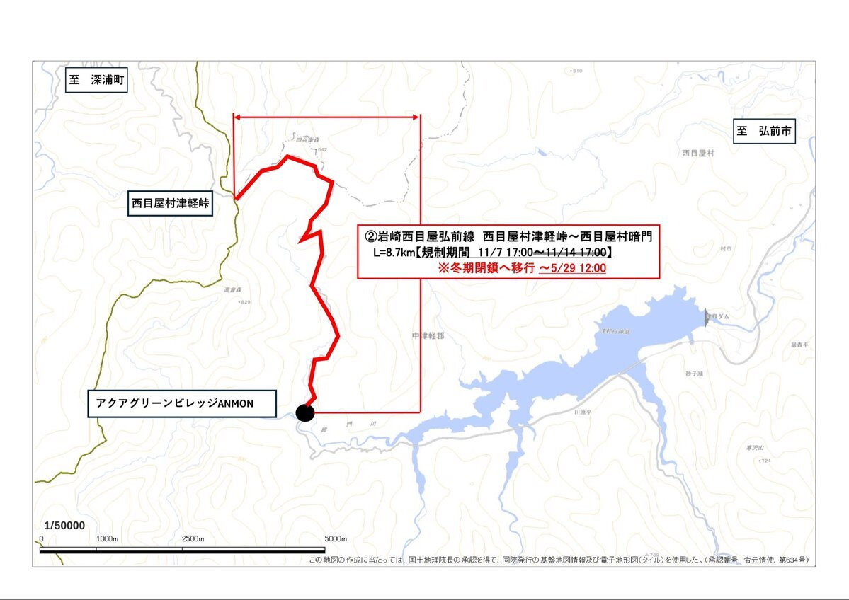 【#通行規制情報】 ②#岩崎西目屋弘前線 西目屋村津軽峠〜西目屋村暗門について全面通行止めを延長します。(引き続き冬期閉鎖へ移行) ③#国道103号 青森市酸ヶ湯〜十和田市谷地について全面通行止めを実施します。 詳細は以下の画像の通りです。 付近を走行する際はご注意ください。 x.com/aomoriken_dour…