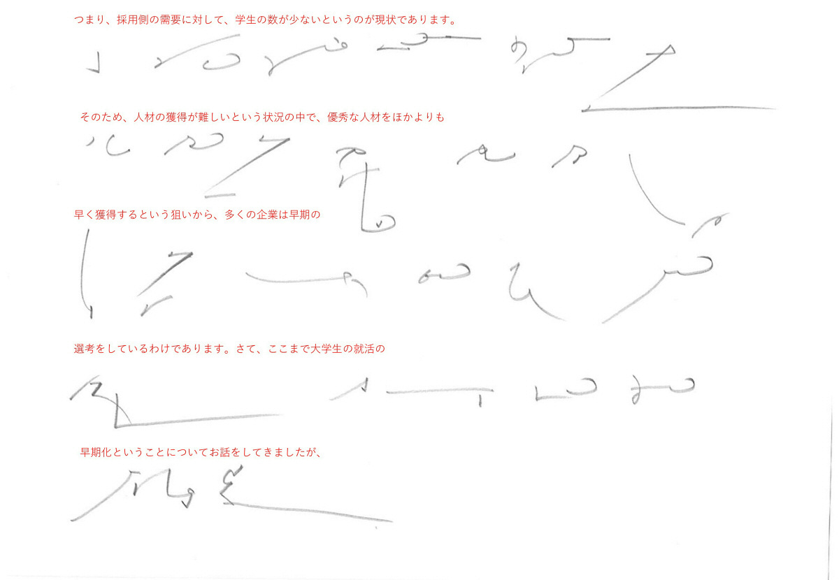 本読みパート 「就職活動」は、大学生にとって関心が高いテーマの模様……そりゃそうだ #速記 #早稲田式 pic.x.com/B6KgsUKThi
