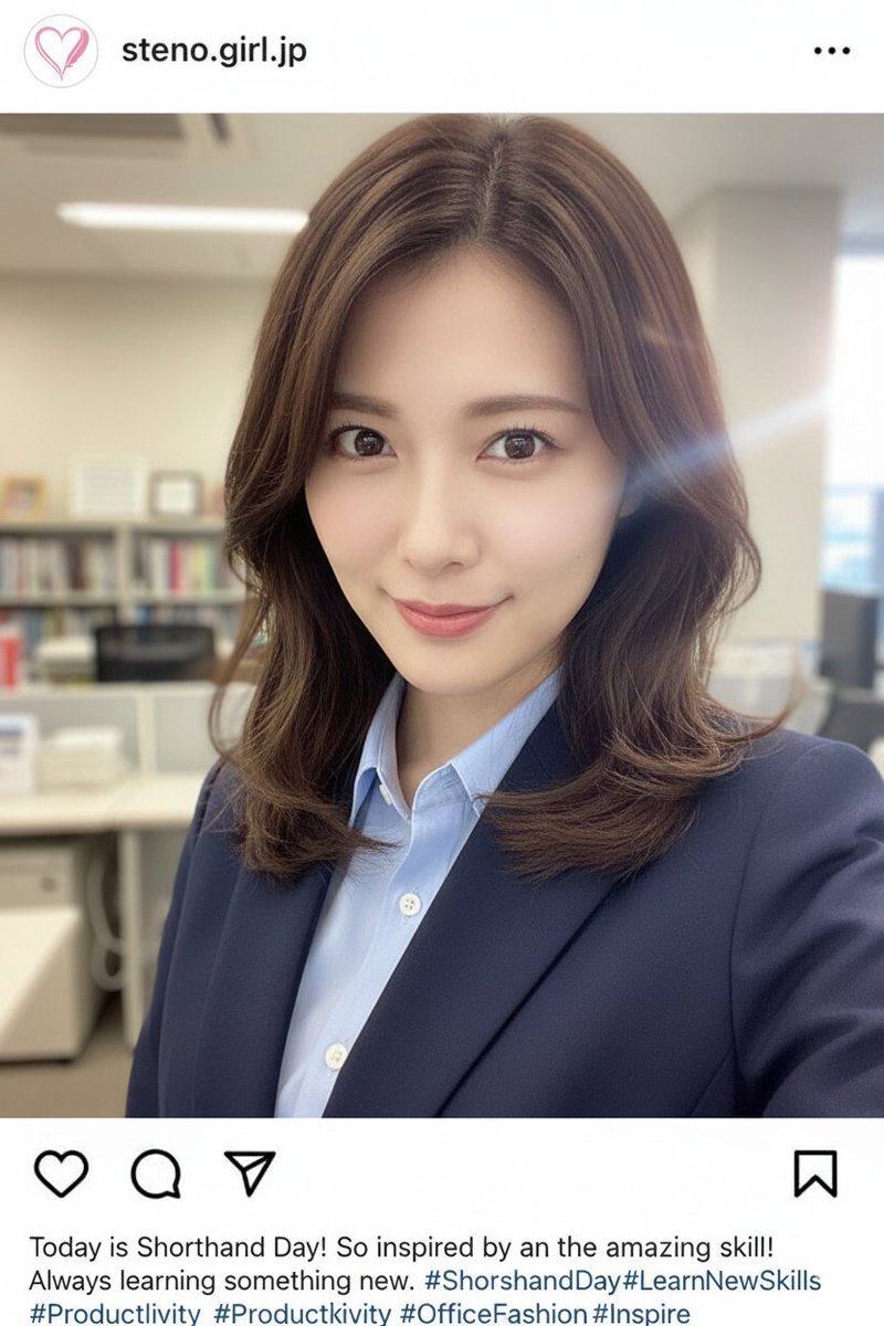 今日のFinstagram(#Gemini に作らせた架空の #Instagram です。) 今日は速記記念日ってことでこちらです。 #AIart #AI美女 #AI美女リアル #インスタ #速記記念日 #30代女子 pic.x.com/FdVlCfaI6H