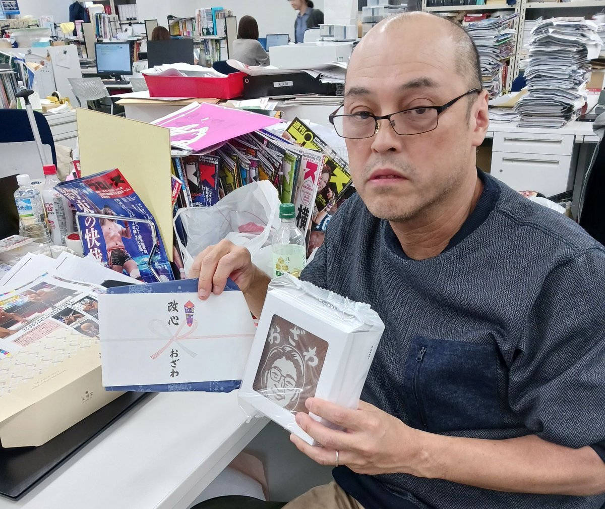 OZAWA選手から頂戴した文明堂のカステラを湯沢編集長に確かに渡しました。(井上) #noah_ghc #週プロ #週刊プロレス pic.x.com/W43h5Oa2Vq x.com/noah_ghc/statu…