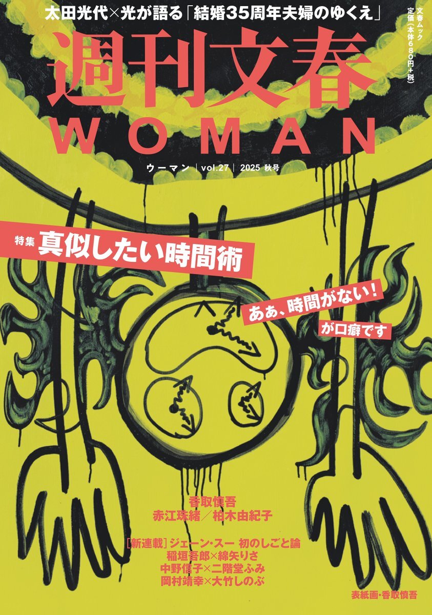 #週刊文春WOMAN 2025秋号 #文藝春秋 好評発売中 特集 「真似したい時間術」 #香取慎吾 描き下ろし #表紙画 第27弾 「#TimeTimeTime」 インタビュー #稲垣吾郎 × #綿矢りさ #談話室稲垣 読者アンケート抽選5名様 図書カード3000円分 締切12/22㈪0時 bunshun.jp/articles/-/819… pic.x.com/pgQmioDkDv
