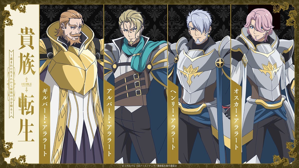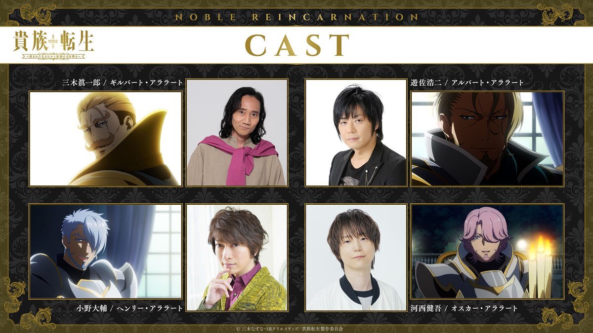 TVアニメ #貴族転生 ~恵まれた生まれから最強の力を得る~ ⚔️追加キャスト発表⚔️ #三木眞一郎:ギルバート・アララート役 #遊佐浩二:アルバート・アララート役 #小野大輔:ヘンリー・アララート役 #河西健吾:オスカー・アララート役 主人公ノアの兄である親王たち👑 kizoku-tensei.com pic.x.com/9oF33IzNVv