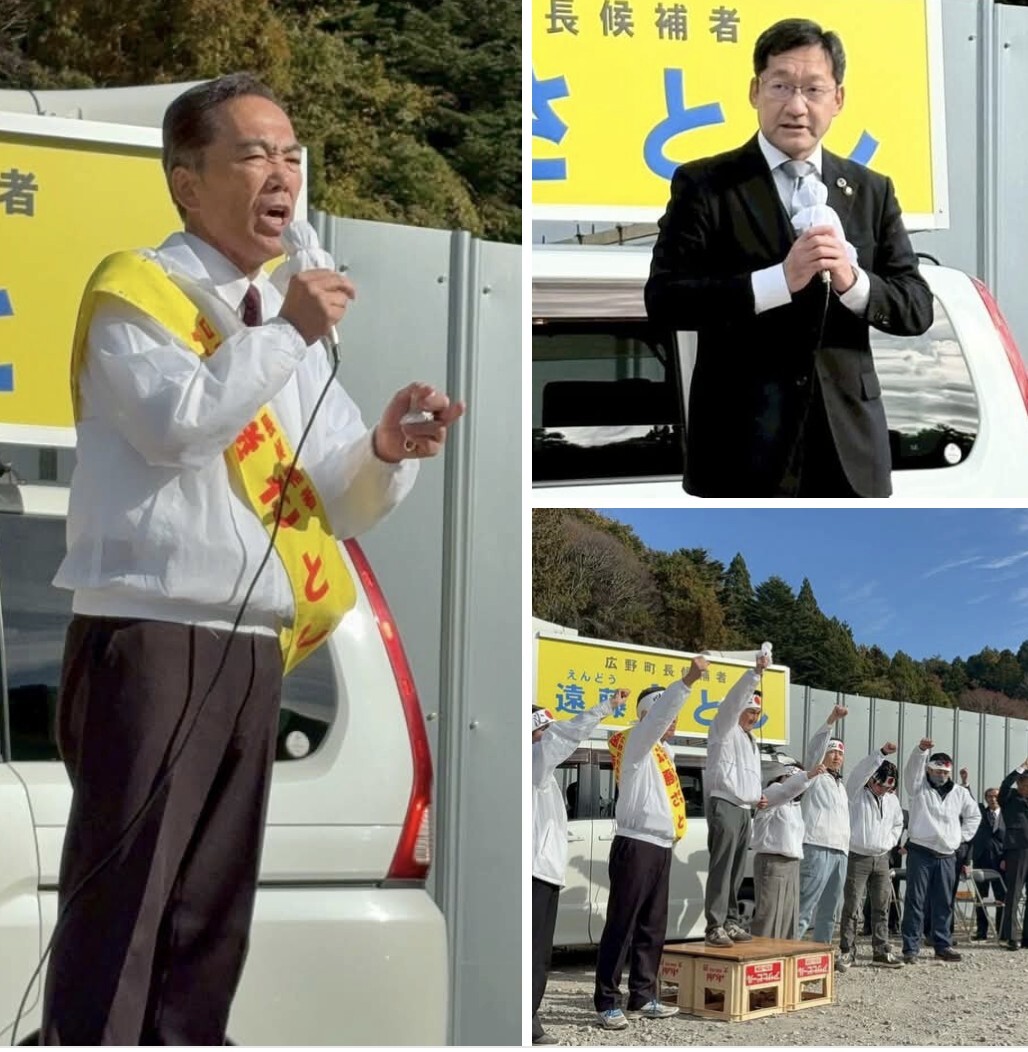 #広野町長選挙 #遠藤さとし #街頭演説会 震災後、広野町の復興を着実に進めてきた遠藤さとし候補。 応援に駆けつけた若松元参議と真山県議からも、これからの大事な復興創生期間を「遠藤さとし」候補に任せてほしい、と熱い訴えがありました。 広野町の皆様の応援をよろしくお願いします。 pic.x.com/rxQUj8YA8c