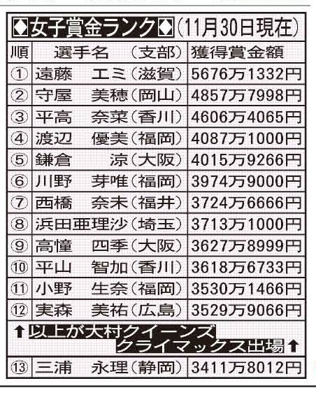 《👸🏻#クイーンズクライマックス 当確》(12月28日〜) #ボートレース #ボートレース大村 #女子賞金ランキング #女子賞金争い 1 #遠藤エミ 2 #守屋美穂(←#レディースチャレンジカップ 優勝) 3 #平高奈菜 4 #渡邉優美 5 #鎌倉涼 6 #川野芽唯 7 #西橋奈未 8 #浜田亜理沙 9 #高憧四季 x.com/shiramegurinio…
