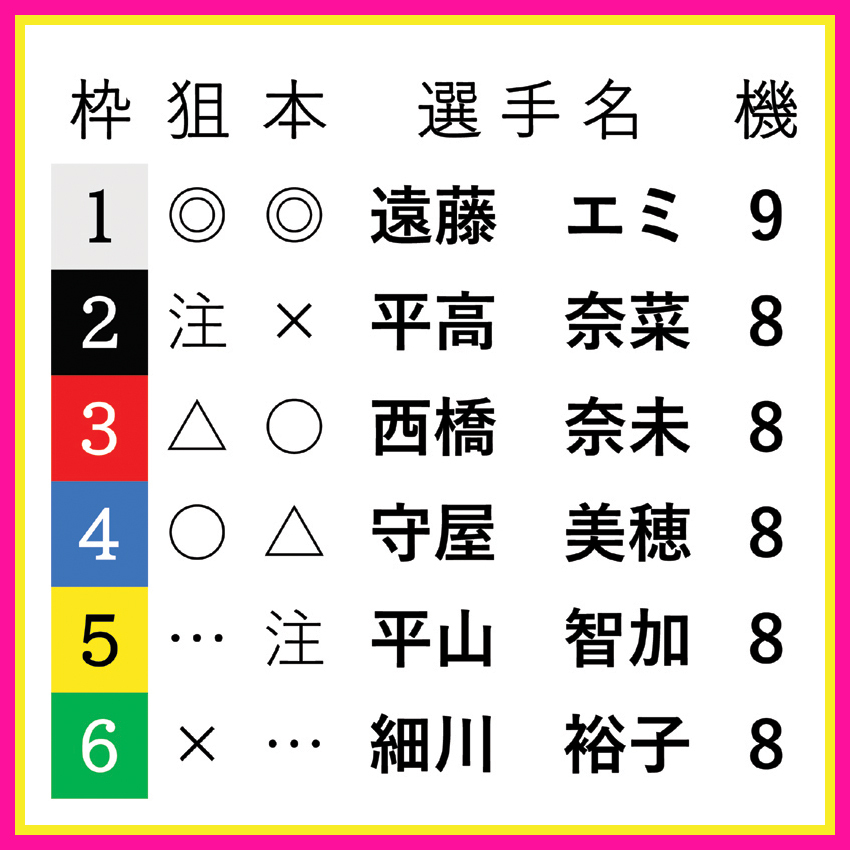 #SGチャレンジカップ #G2レディースチャレンジC 優勝戦の枠番成績です。 舟券予想に活用してください🤫 #遠藤エミ 選手の枠番成績断トツやな🤗 #ボートレース福岡 pic.x.com/VGp0A7SIsD
