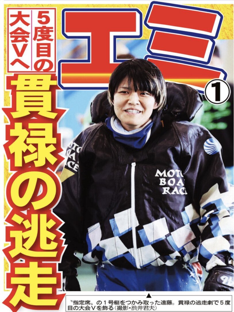 #ボートレース福岡 最終日🚤 GⅡ #レディースチャレンジカップ 📣11レース(15:55締切予定) #優勝戦🏆 ⚪️1号艇は #遠藤エミ 選手 #滋賀 支部 貫禄の逃走劇で5度目の大会Vへ❤️🔥 @fukuokaboatrace #BOATRACE #福岡 ※画像左は本日11/30付 #サンスポ 紙面抜粋 x.com/sanspo_boatrac…