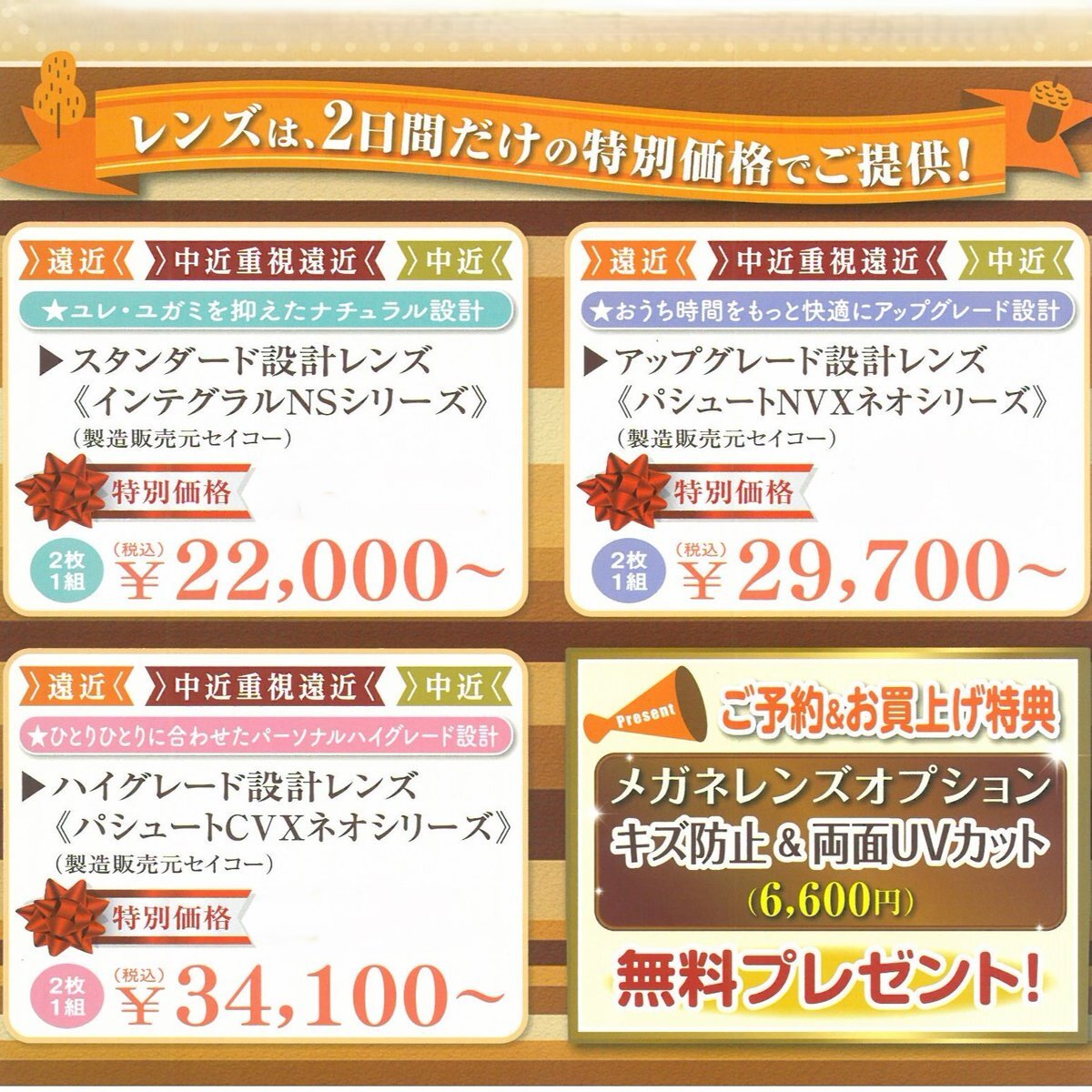 予約制となっておりますが、10月18日現在、両日とも若干の空きがございます。ご予約特典としてレンズオプション【キズ防止&両面UVカット】をプレゼント! レンズが大変お得な価格になる他、フレームも新しい商品が入荷致します。この機会にぜひご予約下さい! #遠近両用メガネ #セイコーレンズ pic.x.com/KVbGr8yct7