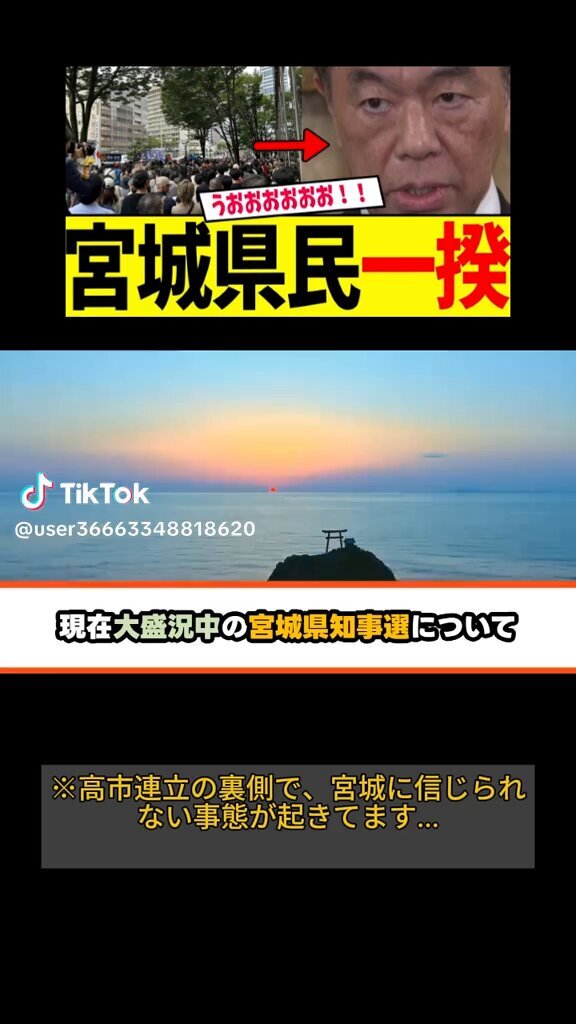 今すぐにこの動画を拡散してくれ‼️‼️‼️ 現職・村井嘉浩知事の売国奴ぶりと和田政宗さんの政策がまとめてあります👇 どんなに移民反対デモをしても、県知事が移民受け入れを強行するなら、無駄骨に終わります。デモをする以上にこの動画を宮城県民に届けることの方が大切です‼️ 拡散しましょ👇