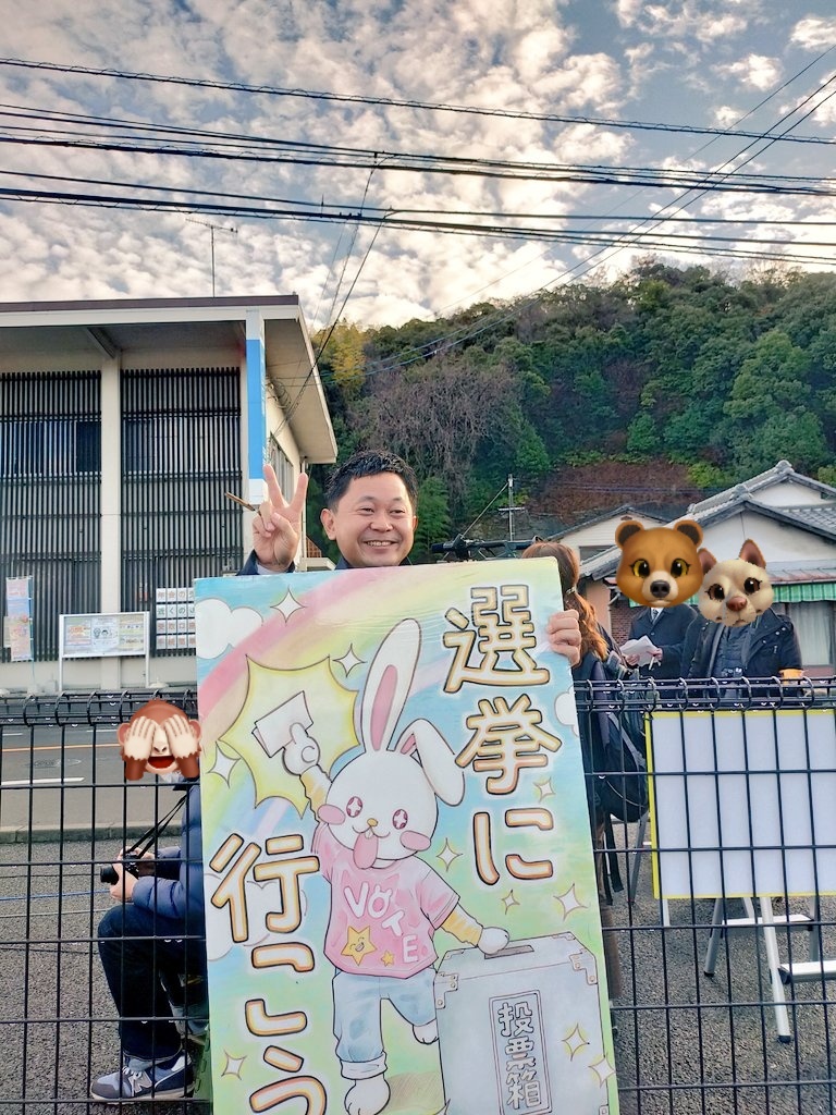 あぶないあぶない、今日は日曜でした。今日が投票日の選挙の応援はできません。ついTikTokをいいねしそうになりました💦 日曜日のうさこ🐰✨と大平さんです😄 #選挙に行こう #選挙に行って政治を変えよう pic.x.com/6xFSwvYXrH