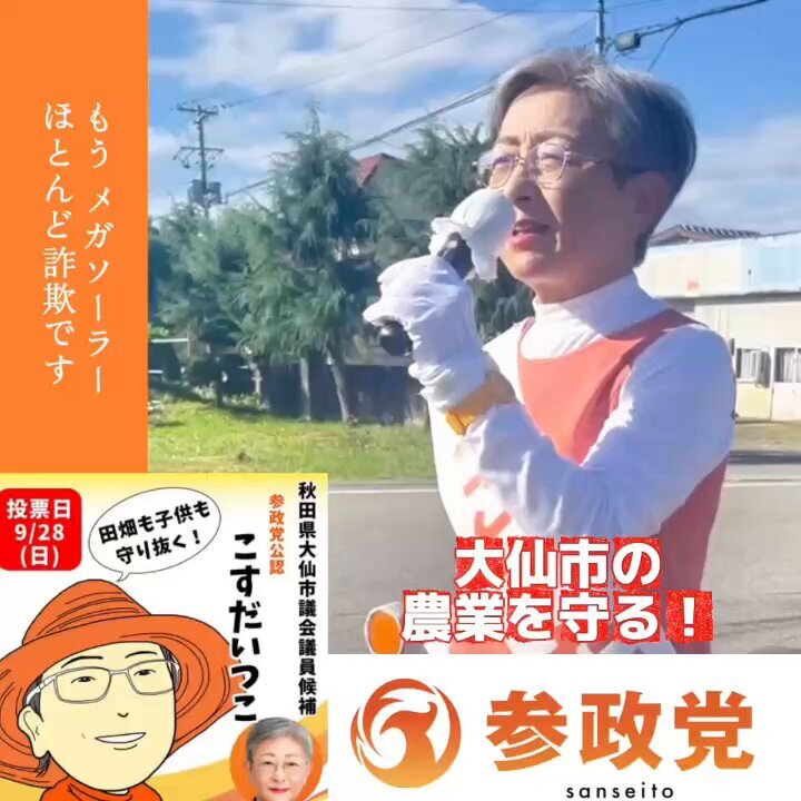 メガソーラー、もう止めませんか❓ 自然を破壊して設置される、殆どが中華性のメガソーラーは「百害あって一利なし」と私は思います。 大仙市の皆さん、【こすだいつこ】候補を是非とも大仙市議会に押し上げてください‼️ #大仙市議会議員選挙 #選挙に行って政治を変えよう pic.x.com/5H9MhCv6pI x.com/gotoseian/stat…