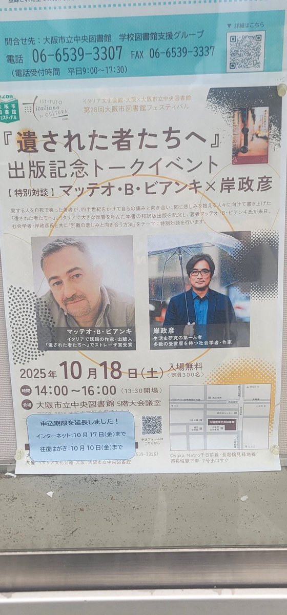 【大事なお知らせ】いよいよ明日となりました。イタリア人作家マッテオ・ビアンキさんとトークします。自伝的小説『遺された者たちへ』愛する者を失った悲しみを乗り越えて綴られた、身を切られるような作品です。18日(土)14時大阪市立中央図書館にて。みなさまぜひお越しください。配信はありません x.com/Shincho_Bungei…