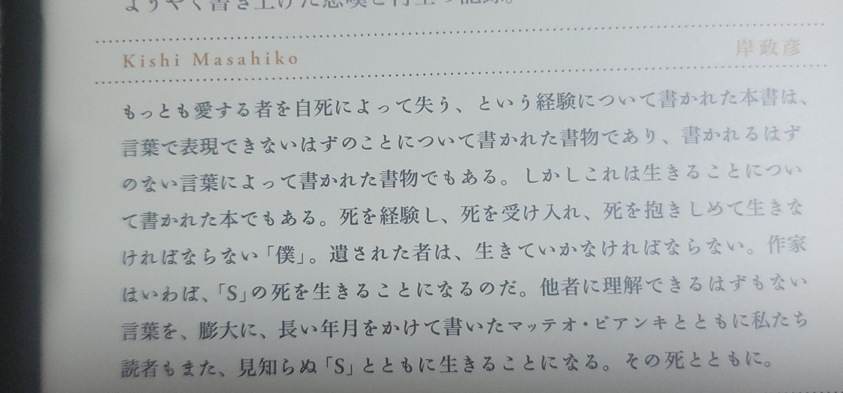 昨日のトークイベント会場で購入した📕『#遺された者たちへ』を、先ほど読了を‼️👏 トークイベントでも、著者から巧みに話を引き出していた #岸政彦 さんのコメント(👀📷️✨のラスト参照)、流石ですね、と感心を➰👋😃 #まちゃお765 #FmCoCoLo765 pic.x.com/MVNjhuVQdF