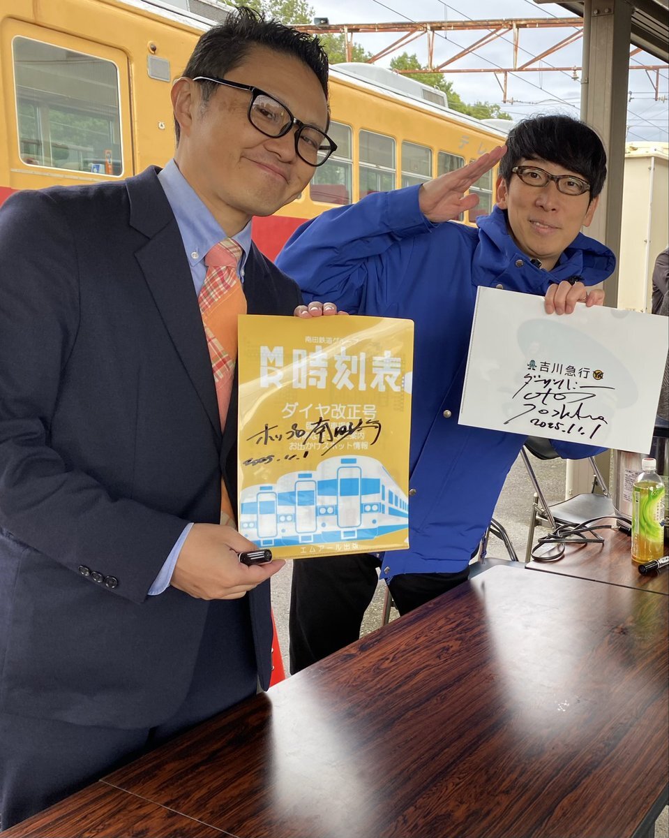 ちてつ電車フェスティバル2025にて吉川正洋さんと南田裕介さん!福井でお会いしたこと覚えていてくださりました。お礼を伝えることができてよかったです。イベントももちろん楽しかったです!#都会の鉄道廃線跡 pic.x.com/YOBqYY89aN x.com/grandhaisen/st…