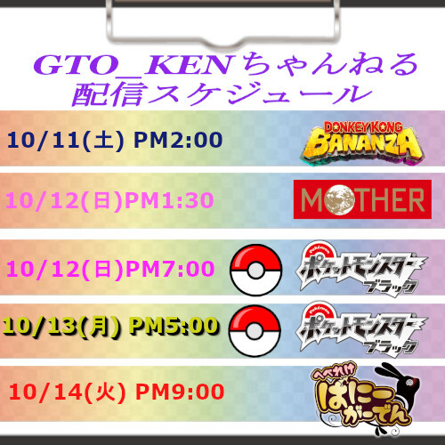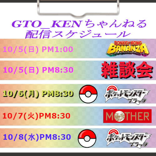 【再アナウンス】 2025年10月の第3週のスケジュール(変更)になります。 ポケモン人生縛りは負けなければ最終回になる予定です。 よろしくお願いします! #配信活動 pic.x.com/3cRXDl3LMD