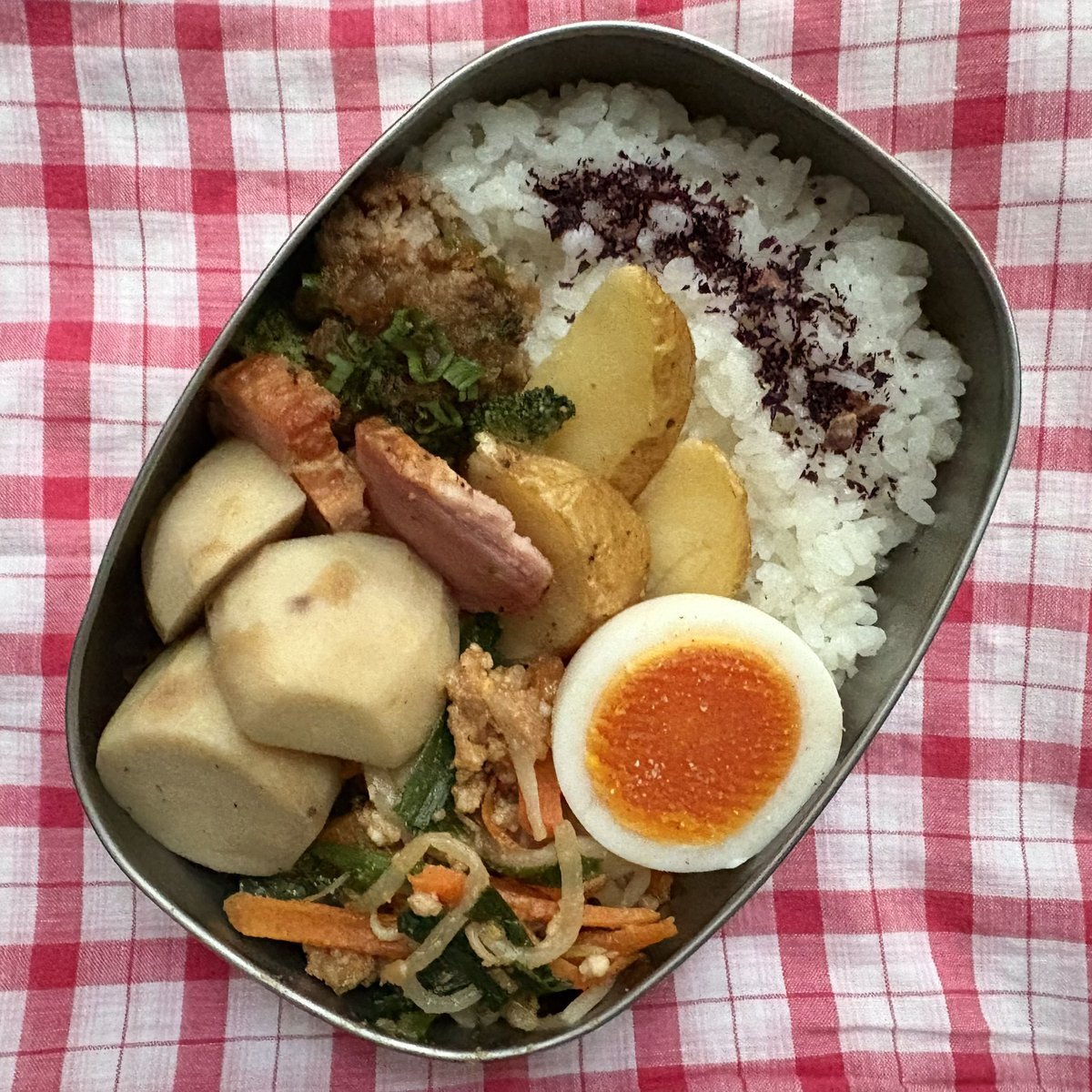 今日のお弁当🍱 …って、もはや昨日のお弁当。 #里芋の煮物 などなど。 職場でインフルエンザ予防接種、「痛かった?」「痛くなかった」とかいまだにやってるの、小学校の時からレベルが変わっていないわ、奥さん🤣 #お弁当 #お弁当記録 pic.x.com/4PMak9Lmx4