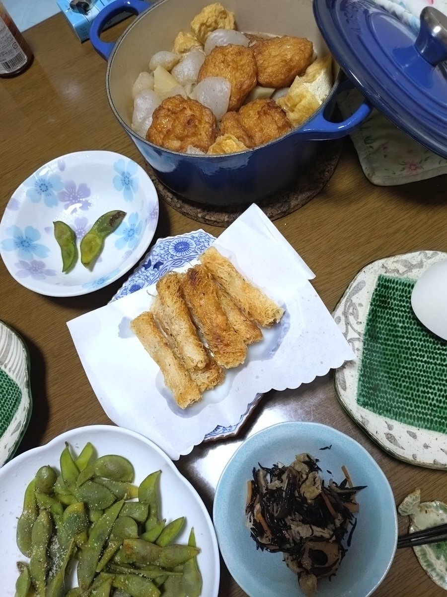 連休初日。とはいえ予定みっちりなので、のんびり過ごせるのは今夜だけかも? 父の畑から里芋が届いたので、煮物など小料理屋風のつまみで一献。はぁ、幸せ。 #おうちごはん #里芋の煮物 #海鮮網春巻 #ひじきの煮物 #明太子入りだし巻き卵 #郡山市 pic.x.com/KfnnAHWerD