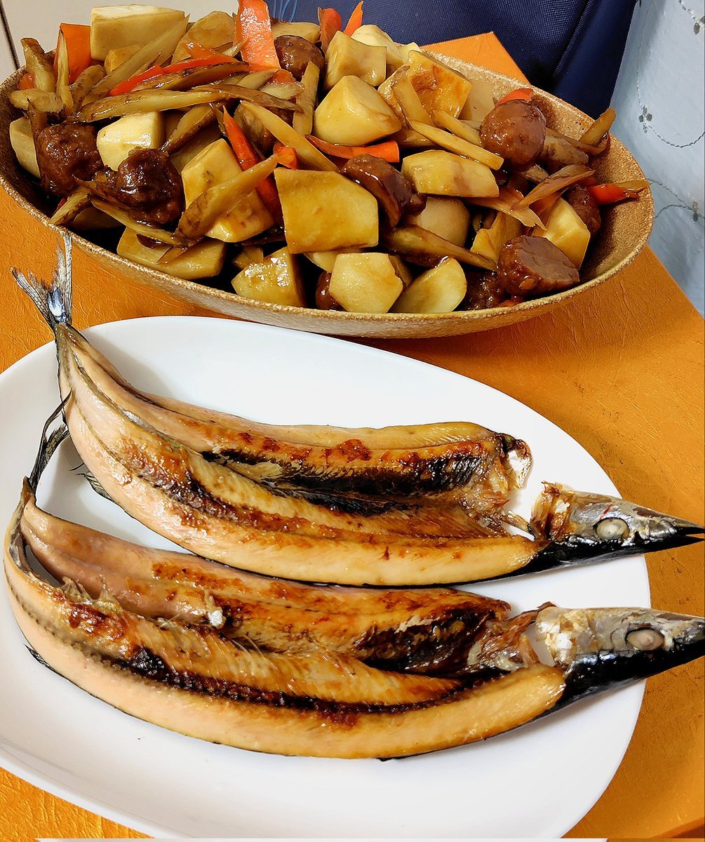 秋の秋刀魚はシンプルに焼きで🐟 ごぼうと里芋の煮物には、中華肉団子を使ってみました✋ 程よく煮込まれててなかなか良いですの( ・ω・)フムフム #料理好きの人と繋がりたい #おうちごはん𓎩𓌉𓇋 #秋刀魚の日 #里芋の煮物 pic.x.com/vgCraQUzr9