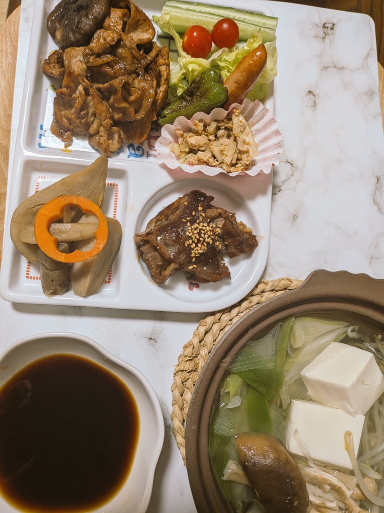 昨日の残り食材もリメイク 大根の葉としいたけの軸はシーチキンと軽く炒めて使い切る🔥 私の風邪が息子に💦🙏💦 しっかり食べて早寝 #湯豆腐 #豚肉生姜焼き#牛肉甘辛焼き #里芋の煮物 pic.x.com/QqU6fxI0gZ