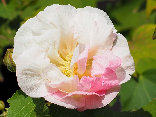 スイフヨウ(酔芙蓉) 午前中は白い花でしたが 夕暮れが近づくと だんだんピンクや紅色へ その様子からこの名前がついたそうです #スイフヨウ #酔芙蓉 #花と緑のまちづくりセンター #明石公園 #明石公園の野草 #野の花が好きな人と繋がりたい #道端の花 #TLを花でいっぱいにしよう pic.x.com/iWNSPNcZUg