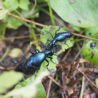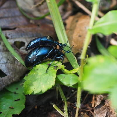 食事中の #メノコツチハンミョウ の雌に寄ってきた雄2匹。雌は気にせず食事に集中していましたよ♪ どこにいるかな?#ツチガエル(#国内外来種)。 #アキノウナギツカミ や、#オオカメノキ 葉が赤く色づいていました。 #野幌森林公園 #自然ふれあい交流館 #野幌 #北海道の生き物 #北海道の自然 #紅葉 pic.x.com/9k3coB3ERt