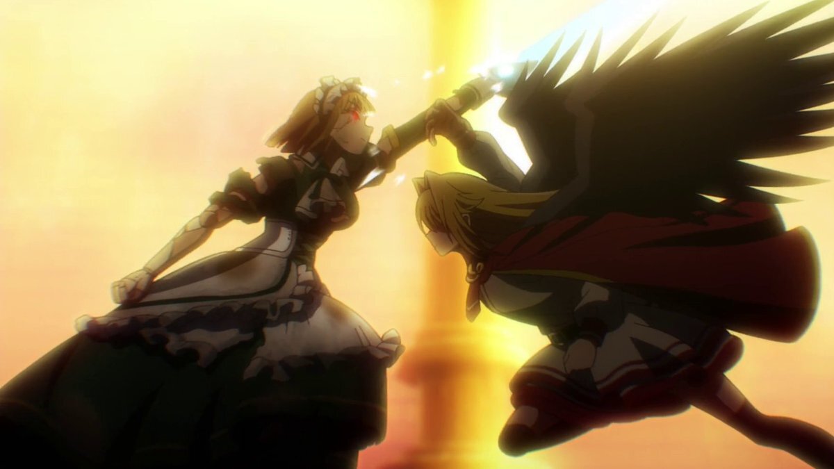 #野生のラスボスが現れた 6話 覇道十二星天とかいうかっこいい肩書きと台詞でバトル開始になってわくわくした メイド姿のリーブラとの弾幕STGな戦闘、OPが岸田教団なこともあって東方っぽさを感じたぜ・・・