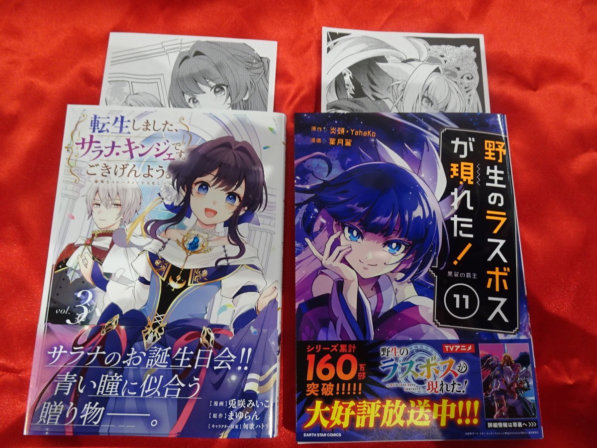 11/14入荷の特典付きコミックはこちら #黄泉のツガイ 11 ※ポストカード #野生のラスボスが現れた! 11 #転生しました、サラナ・キンジュです。ごきげんよう。 3 ※イラストペーパー pic.x.com/Q49vkvrWhC