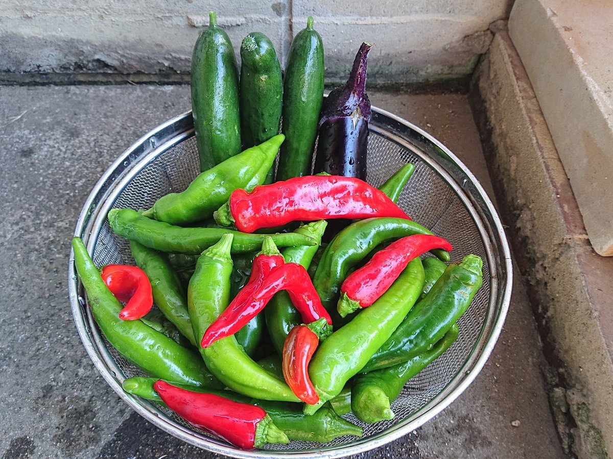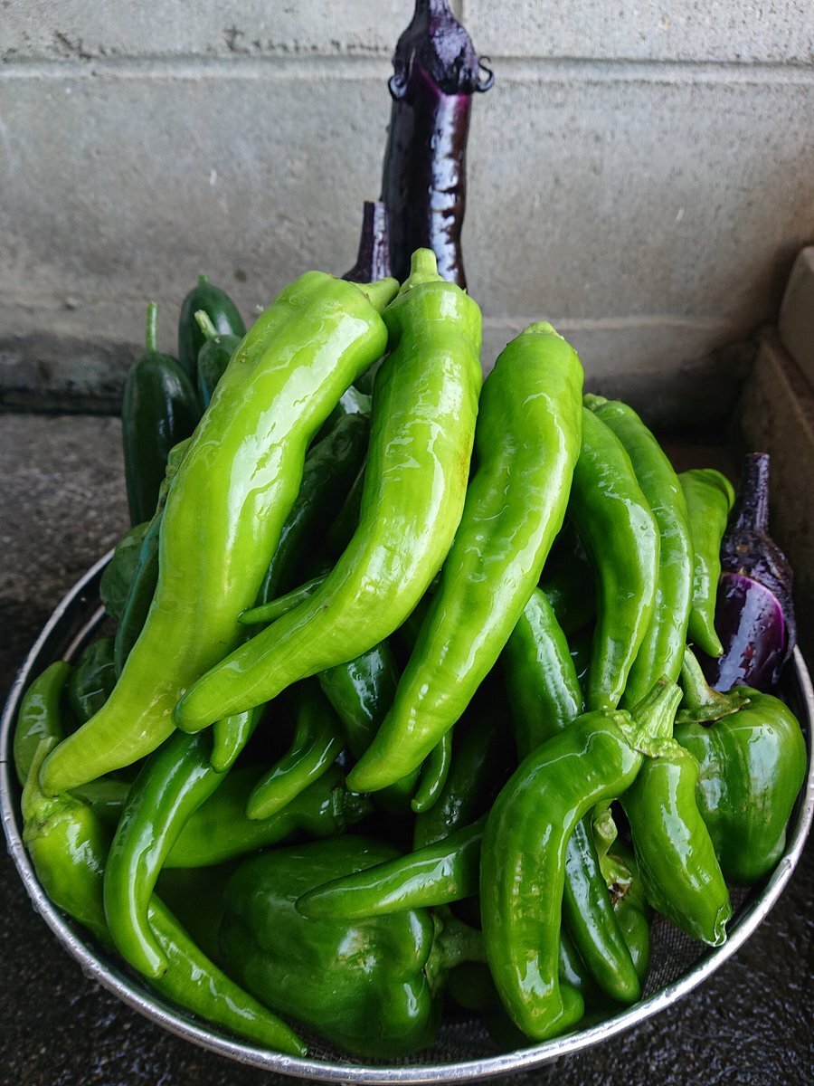 本日は14℃ 昨日よりは寒くない 収穫 #ナス さん #キュウリ さん #ピーマン さん #万願寺唐辛子 さん 今ついている実がおおきくなったら どれも終わりかな? 長い間ありがとう! #ご馳走野菜 #野良仕事 #家庭菜園 #家庭菜園初心者 pic.x.com/wSMURlK6nj