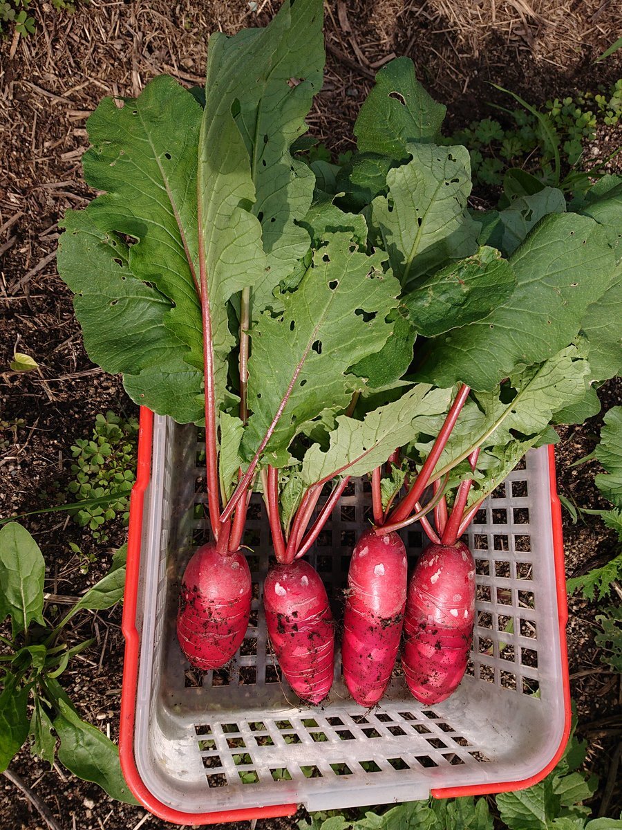 収穫2 #二十日大根 さん 葉物は冷蔵庫内にまだあるので見送り~っ #ご馳走野菜 #野良仕事 #家庭菜園 #家庭菜園初心者 pic.x.com/Cti9mrxuni