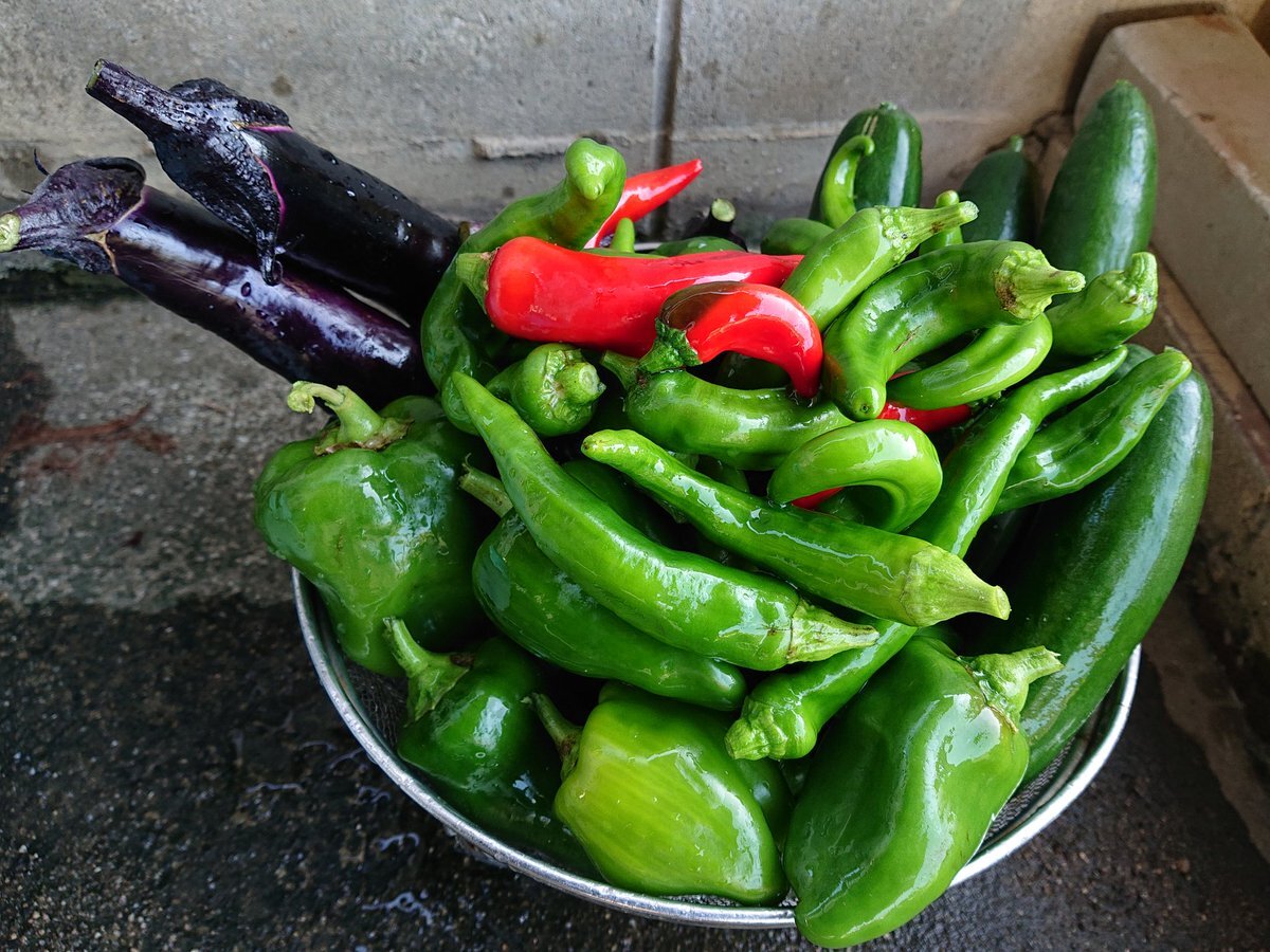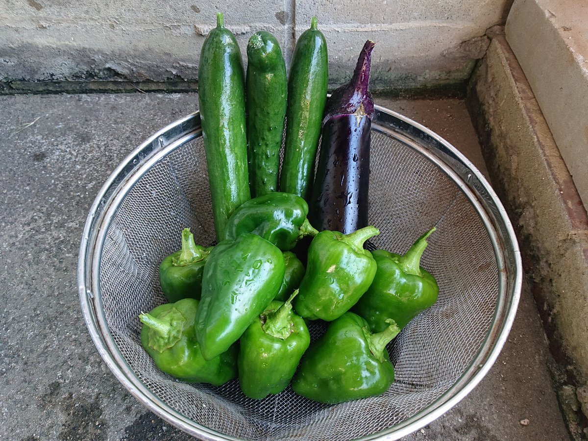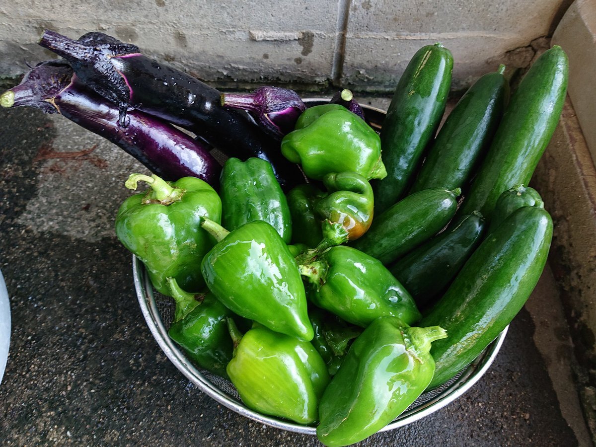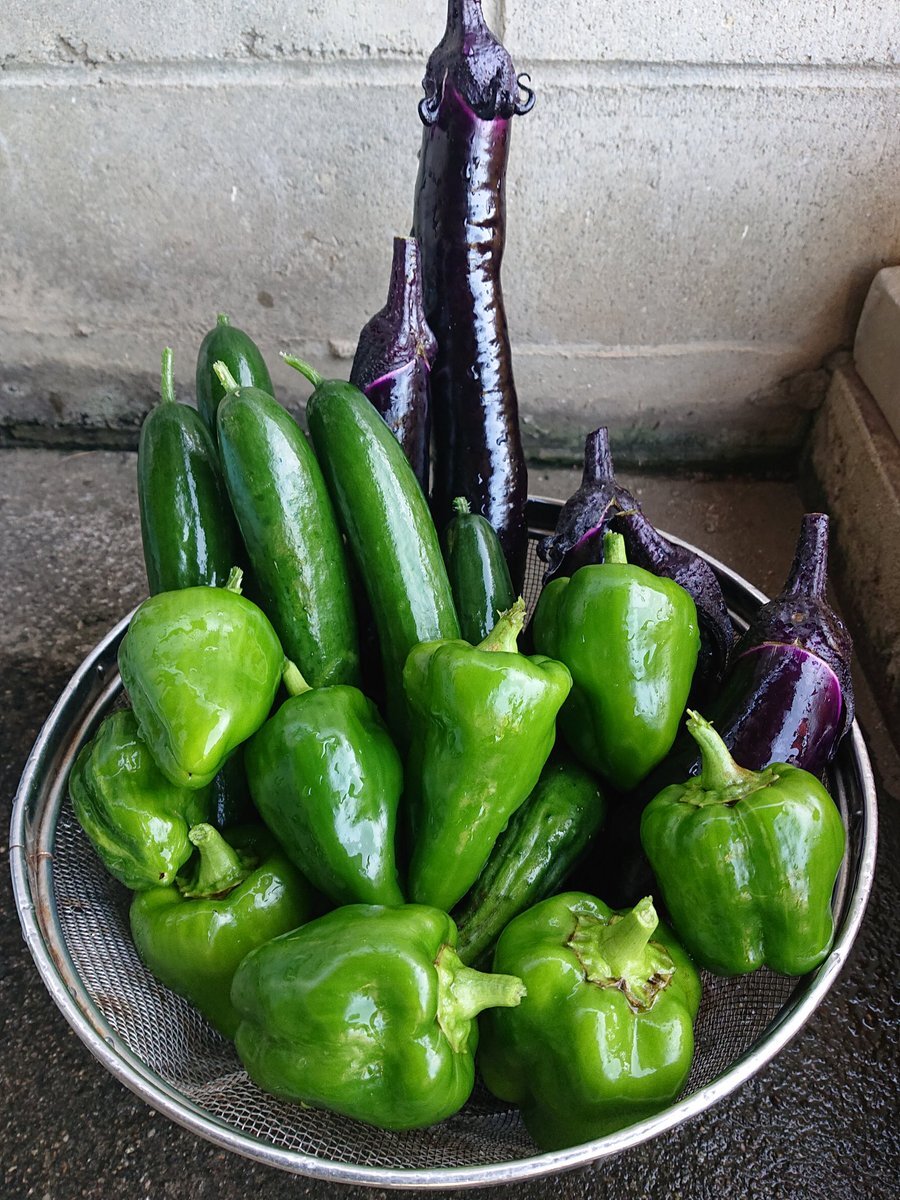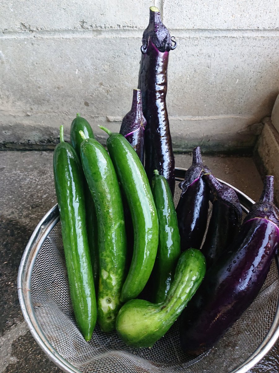 本日の収穫 #ナス さん #キュウリ さん #ピーマン さん #万願寺唐辛子 さん 実のないナスさんは徐々に処分 ピーマンさんと万願寺唐辛子さんも実が少なくなってきた #ご馳走野菜 #野良仕事 #家庭菜園 pic.x.com/8zmmB8ulCc