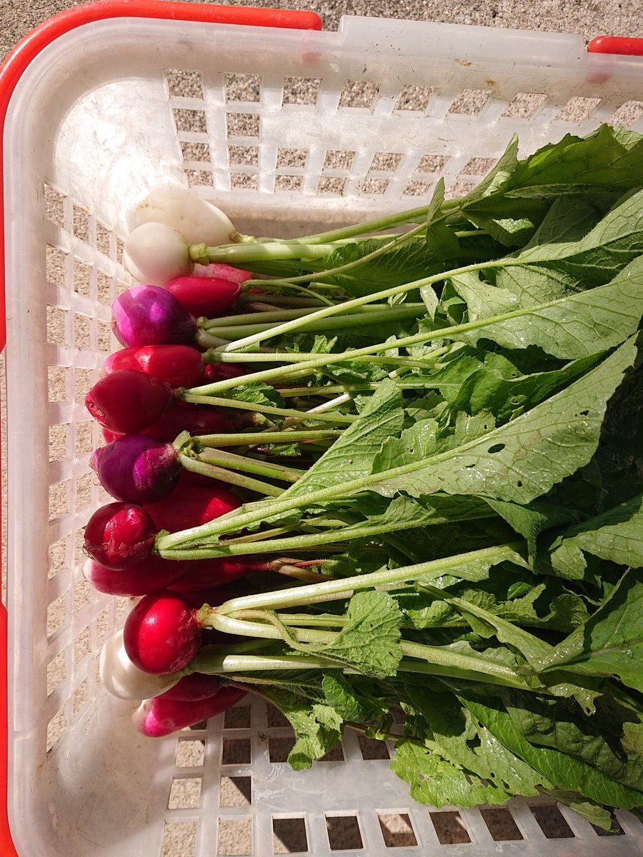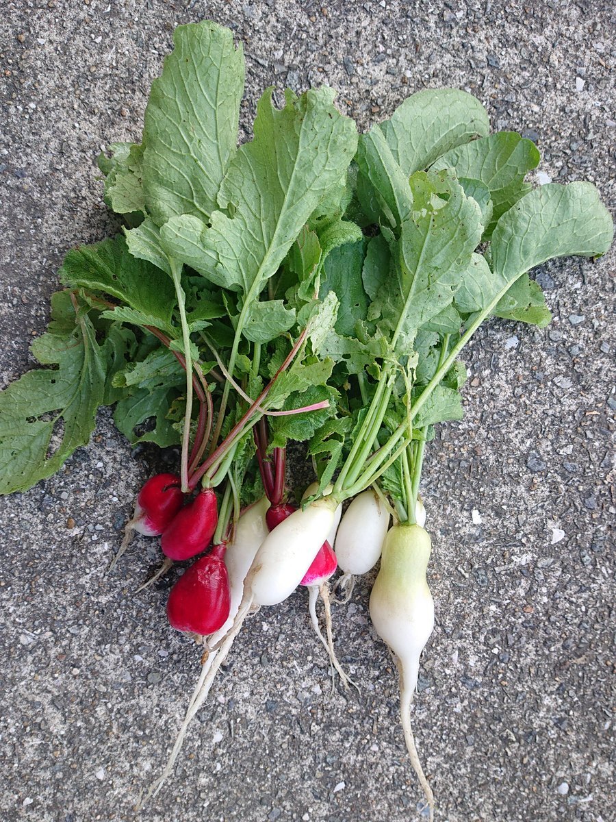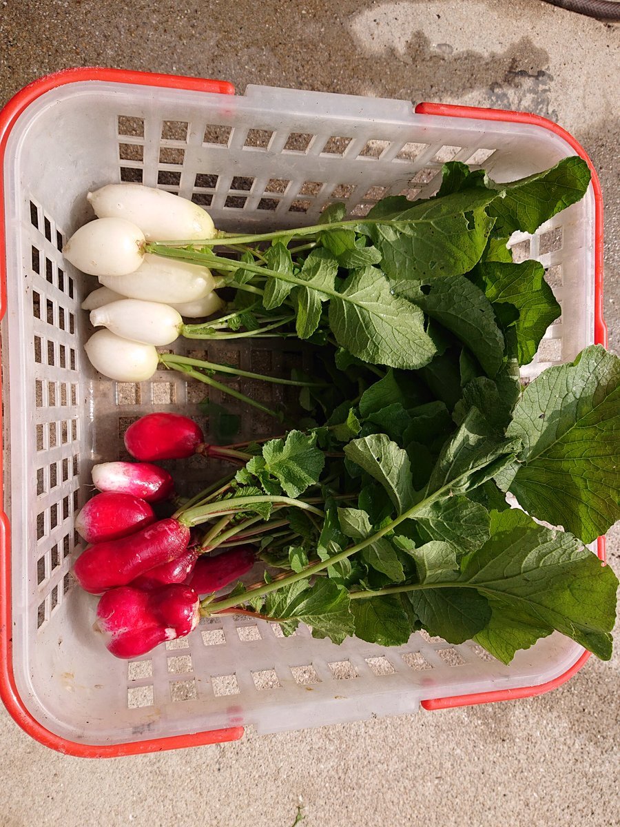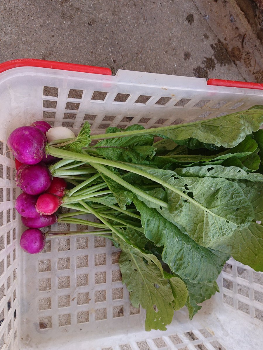 朝の収穫 おみそ汁用(には多い) #二十日大根 さん 作りすぎ、大きくしすぎ問題発生中…💦 ミニ大根さんや大根さんも育ってきているというのに… どうする? #ご馳走野菜 #野良仕事 #家庭菜園 #家庭菜園初心者 pic.x.com/SBNKUTv0RZ