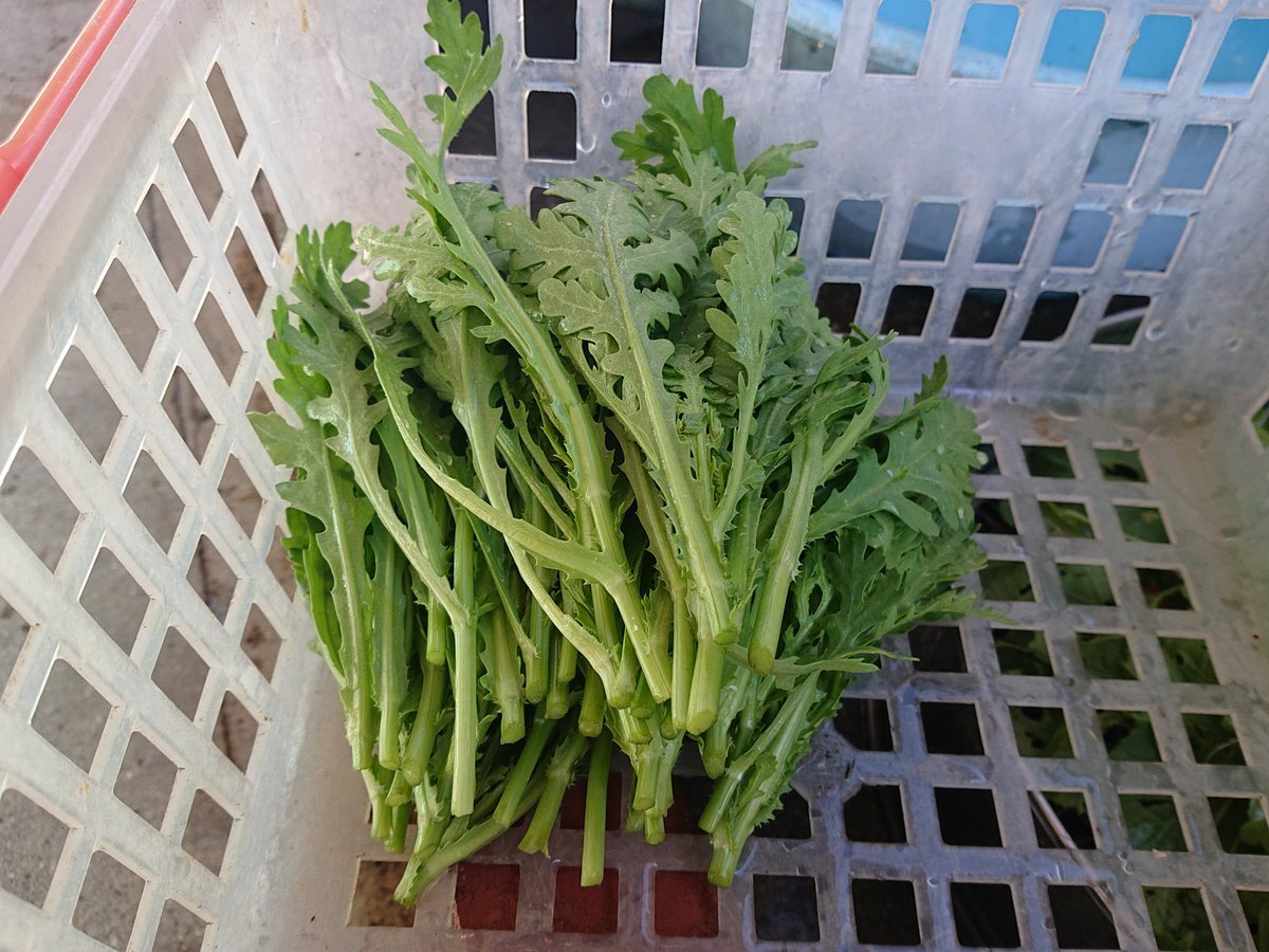 本日の収穫2 #春菊 さん #ルッコラ さん 春菊は娘婿の好物なので 娘が今日来ると言っていたので準備! #ご馳走野菜 #野良仕事 #家庭菜園 #家庭菜園初心者 pic.x.com/9YNMs8XYDD