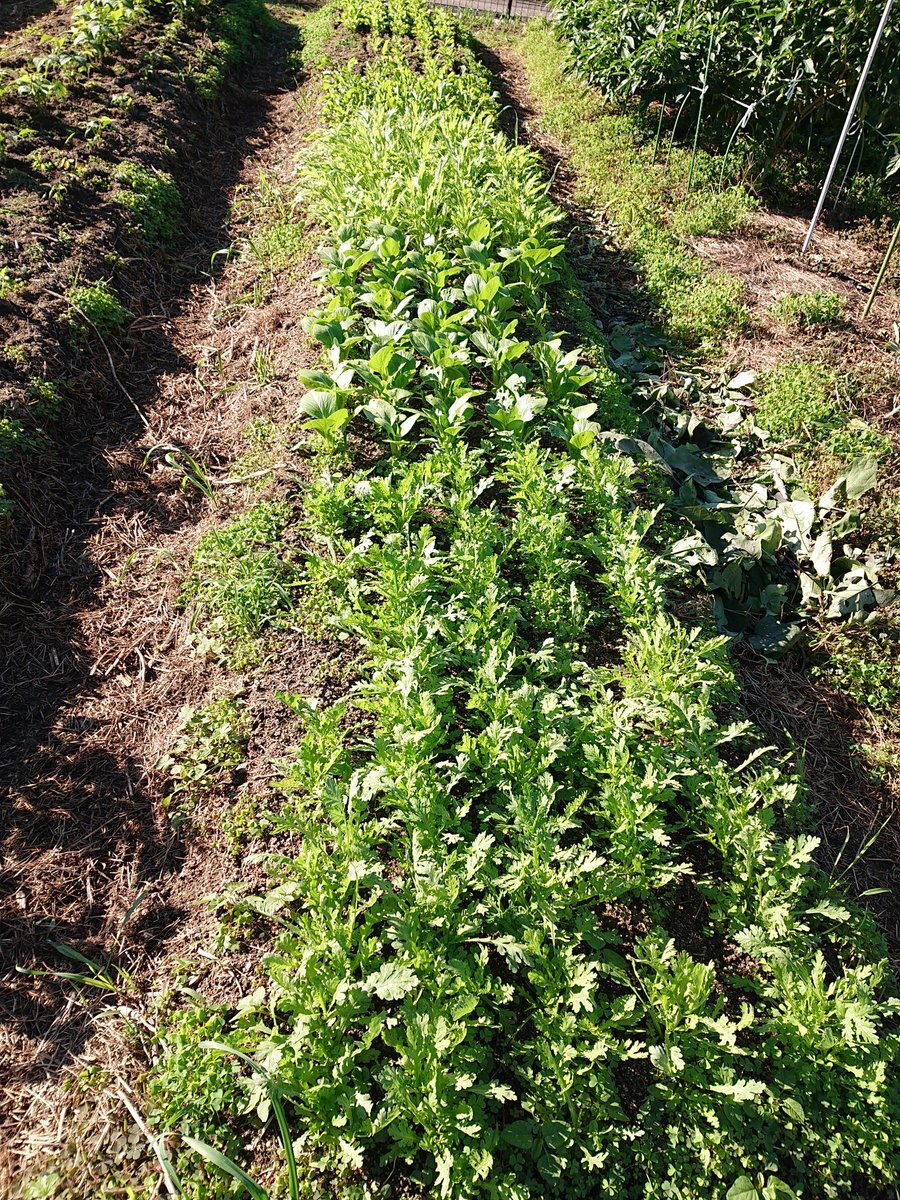 葉物類 それぞれ育ってきたから 大きいのから間引き収穫 その日食べる野菜さんだけ収穫すれば良い #ご馳走野菜 #野良仕事 #家庭菜園 pic.x.com/oss9TtvEYI