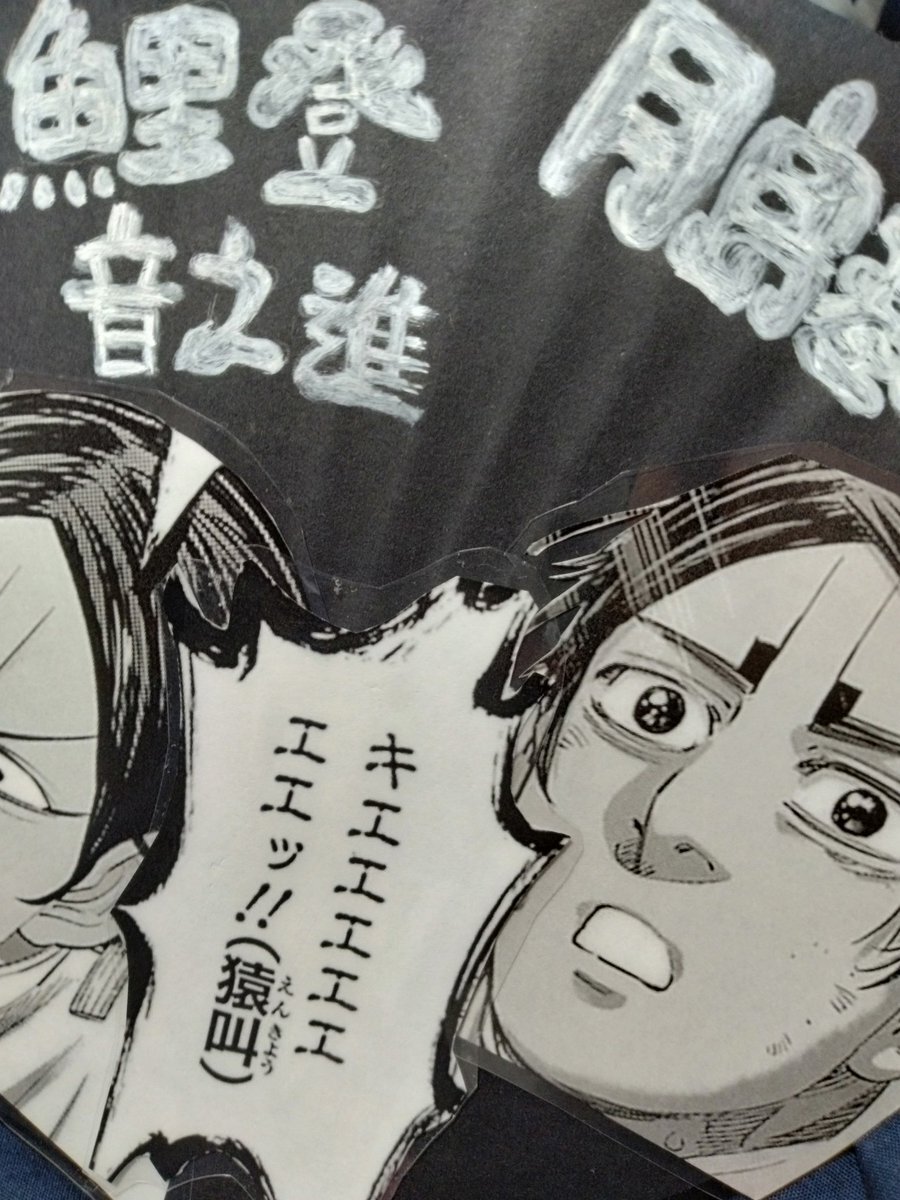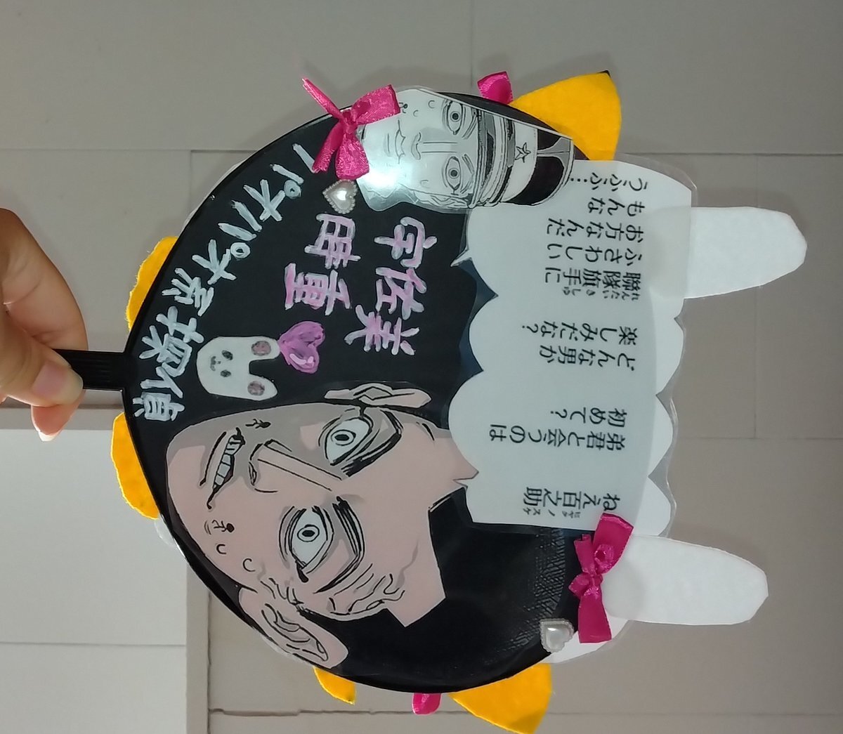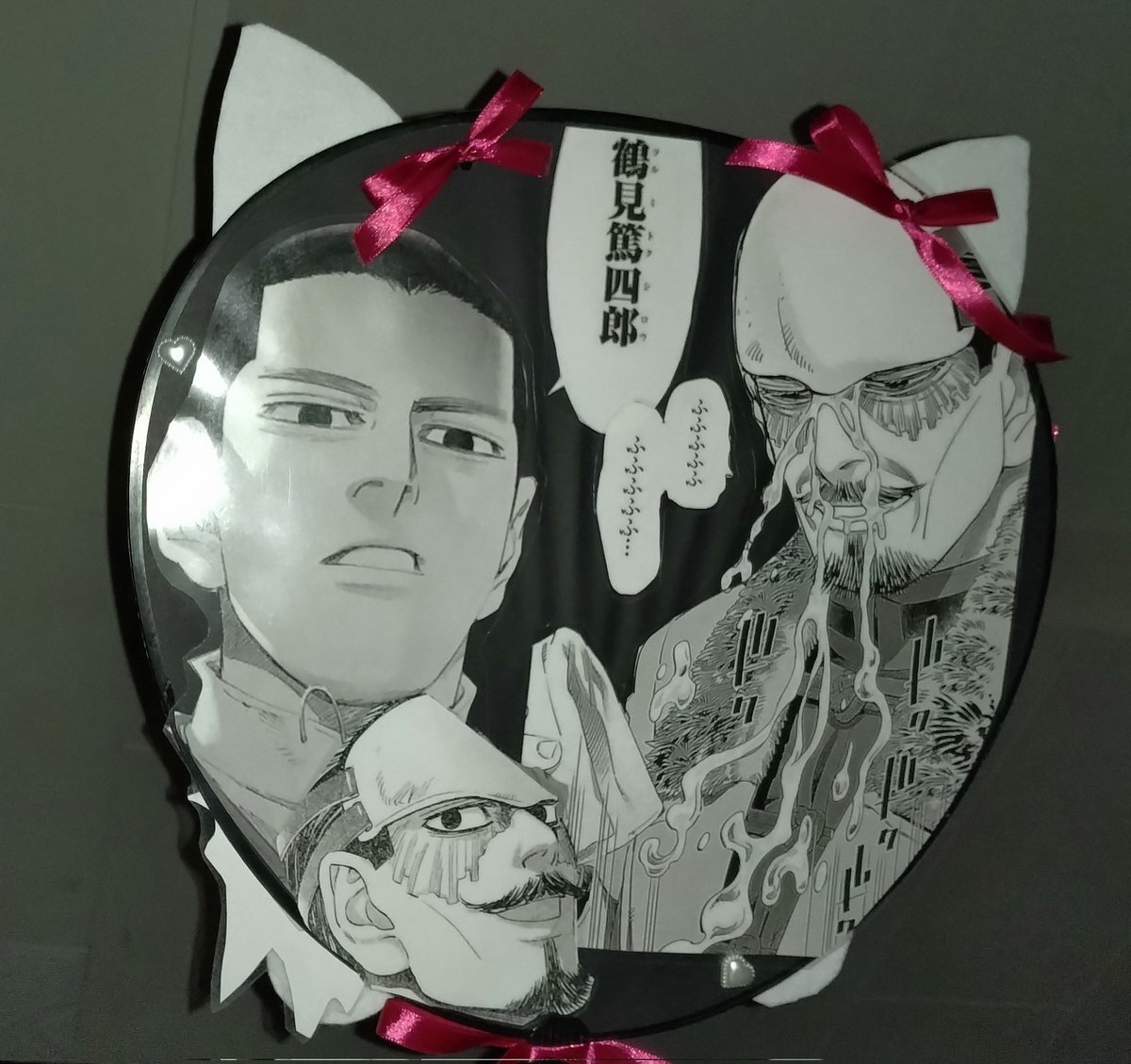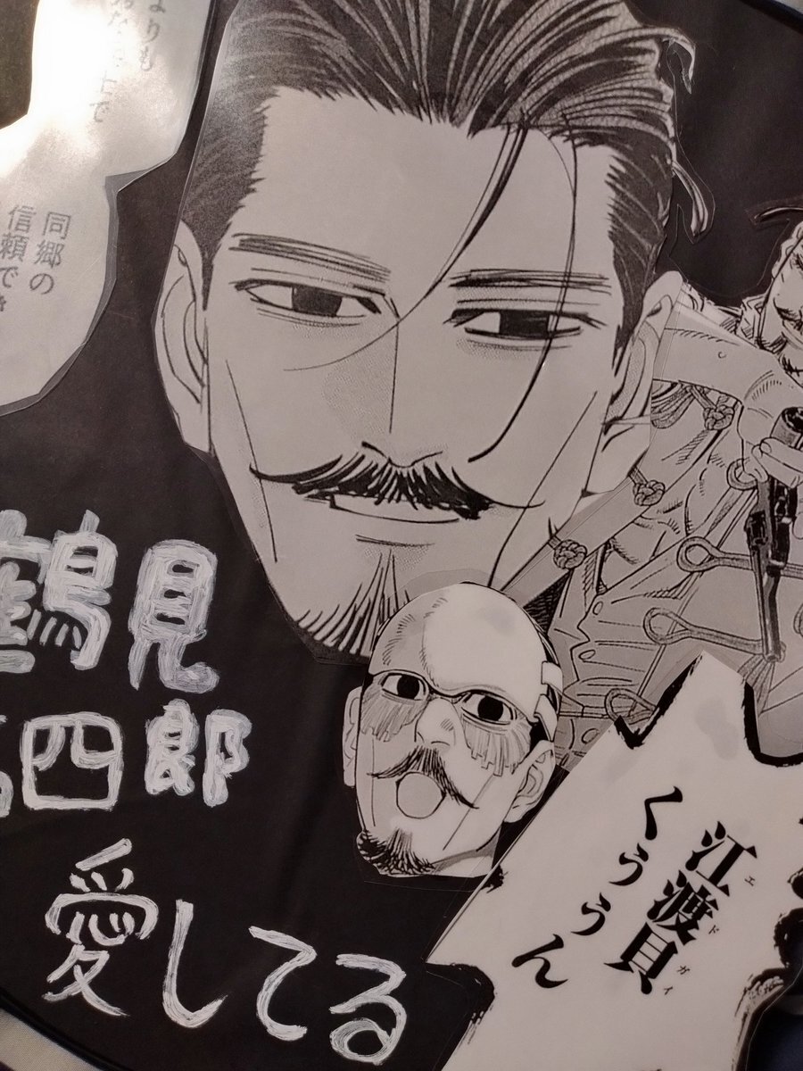 とりあえず今日は3時間くらい作業してみた!明日か今日ぶっ通しでやるかで悩むけどとりあえず大体は完成💕 名前をもっとキラキラにしたりうちわのデコ極めます #金カム好きさんと繋がりたい #ゴールデンカムイ pic.x.com/rw3c004wDE