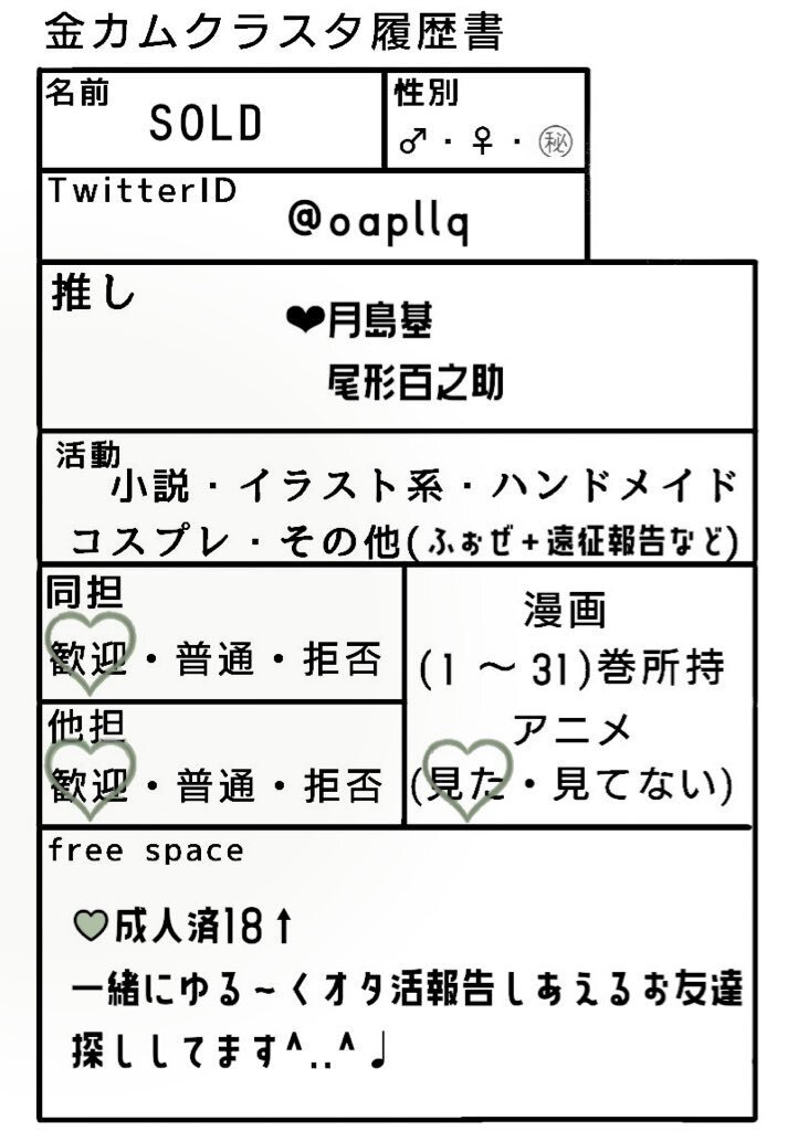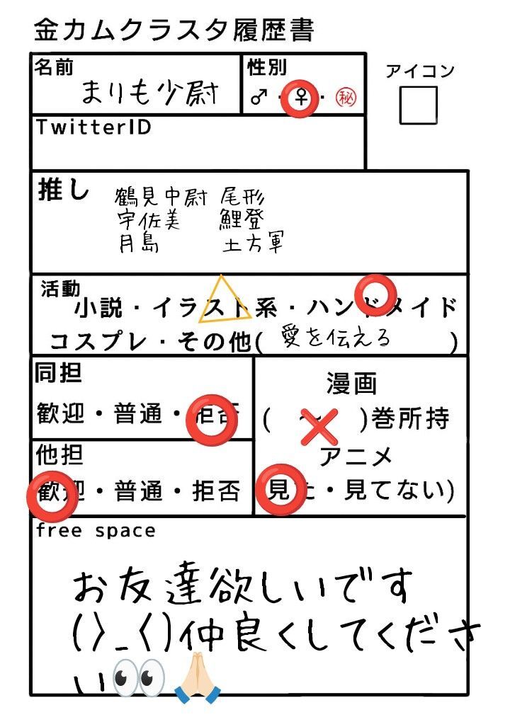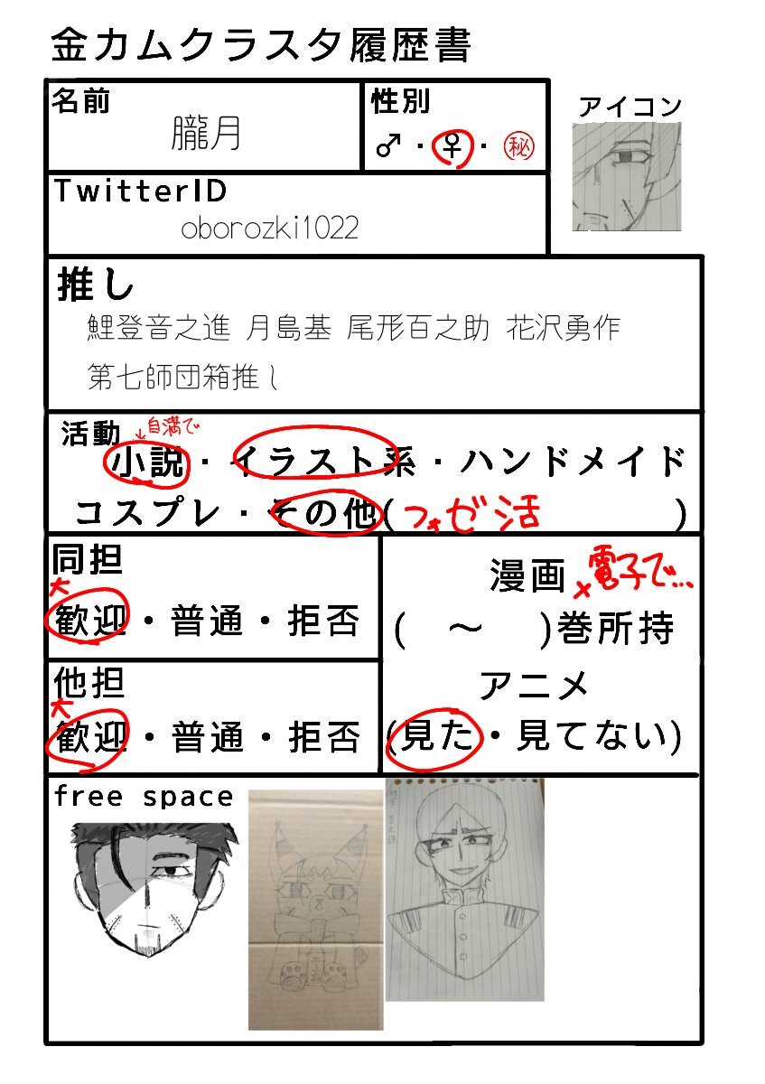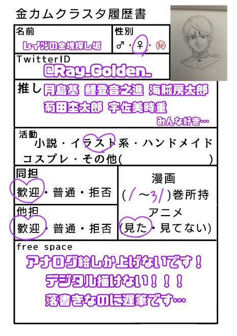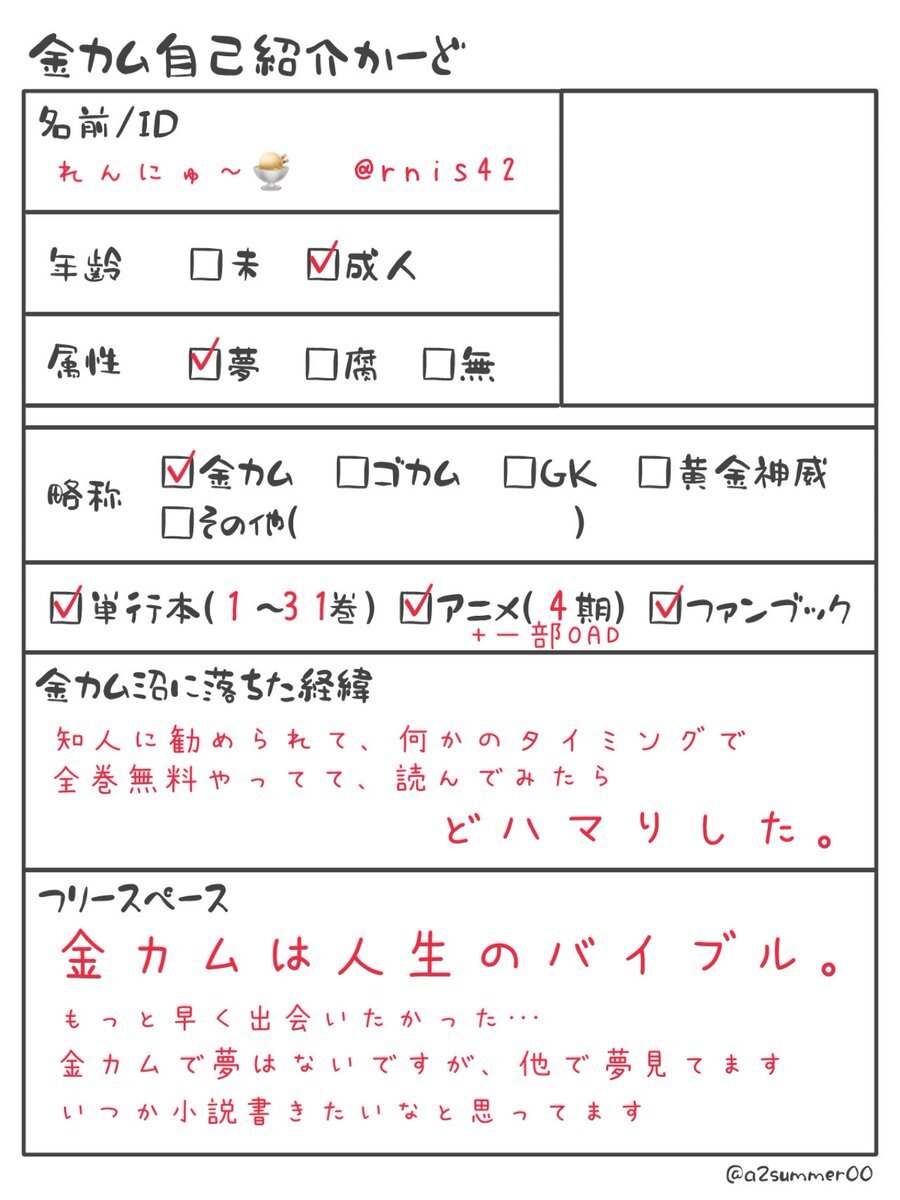 やっと書いたのでぜひ🙌🙌🙌 いいねしてくれた方で気になった人をフォロー行きます🙇‍♀️ #金カムクラスタ履歴書 #金カム好きさんと繋がりたい pic.x.com/Ix8dKLP43h
