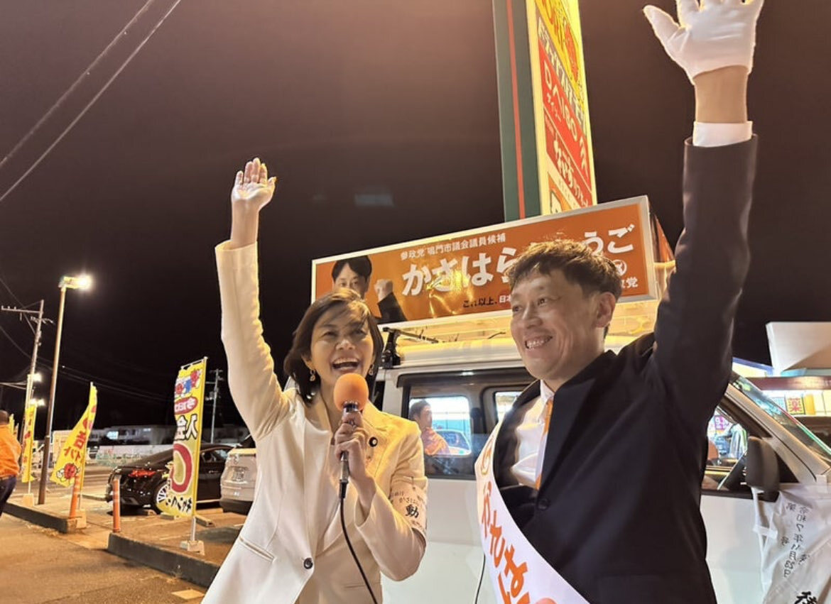こんにちは😊 鳴門市議選3日目となった昨日は、午後から当選証書を受け取ったばかりの梶原ちひろ議員が、夜の個人演説会には梅村みずほ議員が駆けつけてくださいました。